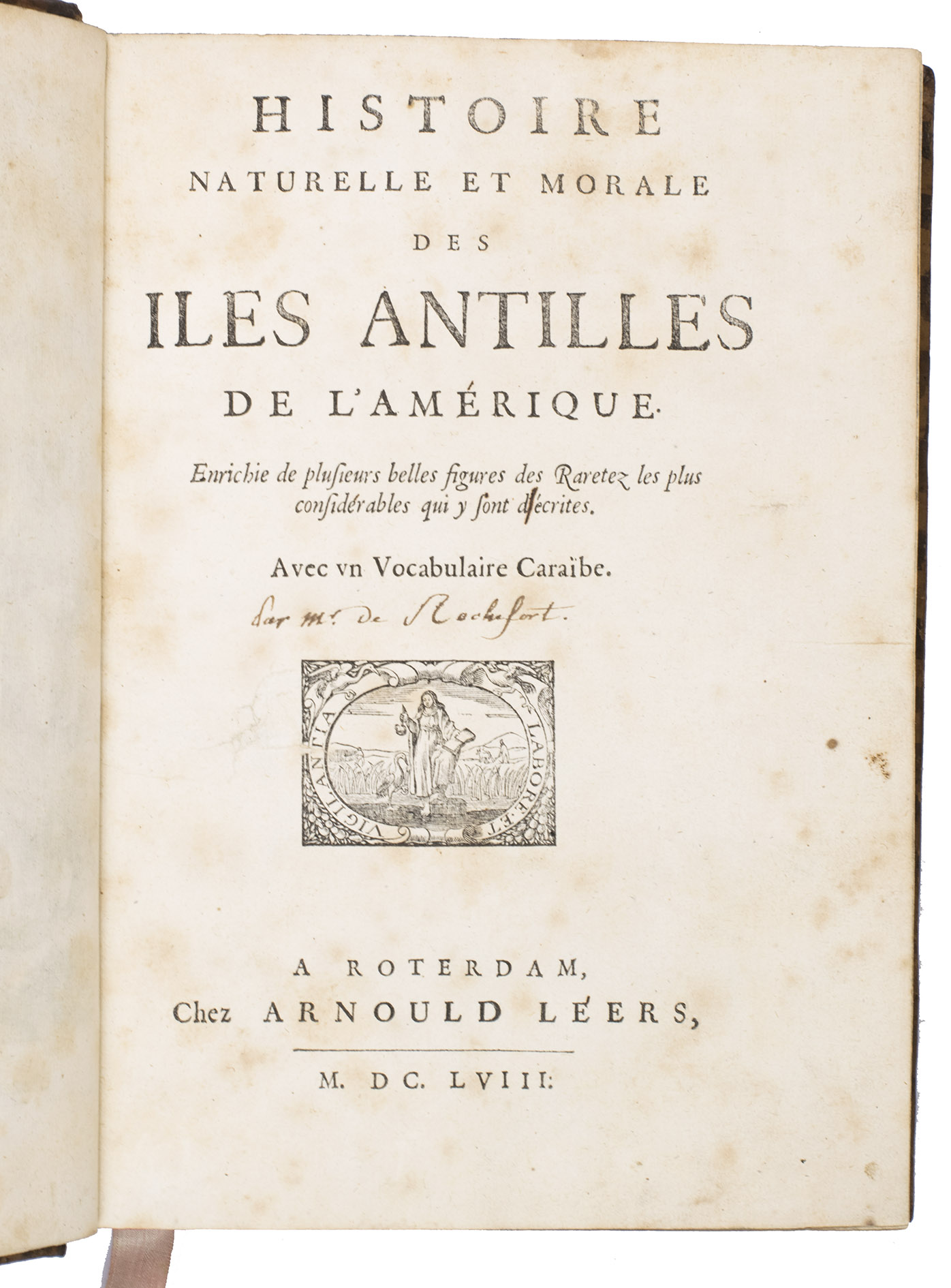 First edition of an important work on the geology and natural history of the Antilles and on the culture and history of the inhabitants of the different islands, by Charles de Rochefort (died ca. 1690). Most of the bibliographies are mistakenly attributing the work to César de Rochefort, a contemporary French jurist and lexicographer, or other supposed authors.
