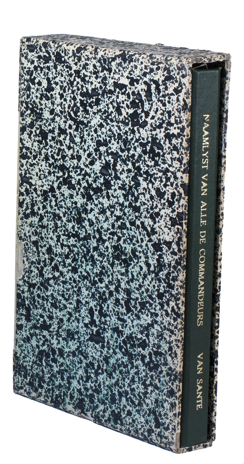 Extremely rare first edition of a list of Dutch data concerning the whaling trade in and around Greenland, compiled by Gerrit van Sante (1728-1779). The book was designed with blank spance to add new data in the years following 1753. The present copy has been updated, probably by the first owner, till the year 1761. Besides the names of the commanders for every Dutch voyage to Greenland and the Davis Strait and the names of the directors for whom they sailed, it also includes an annual record of the number of whales caught, tonnes of blubber and barrels of whale oil, both for each commander individually and for the industry as a whole. "Van Sante understood completely the enormous economic importance of whaling for the Netherlands, and mentions the results of every voyage of every ship" (Catalogue library of G.J. Honig). "Greenland" is broadly interpreted to include the waters around Spitsbergen and Jan Mayen Island, and the Davis Strait fleets (fishing between Greenland and America) are not separately recorded until 1719.