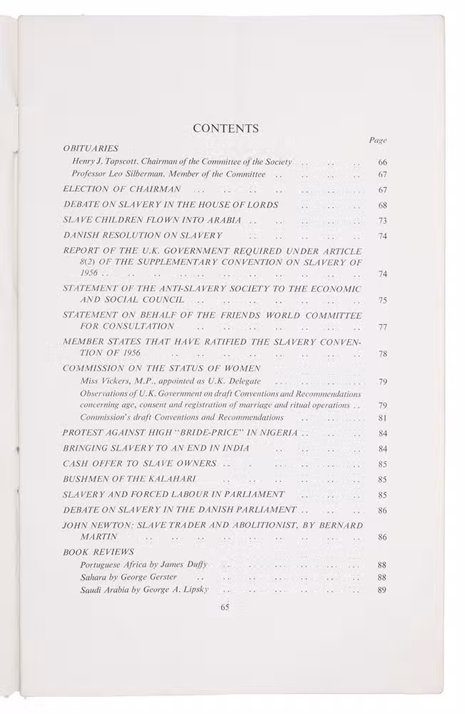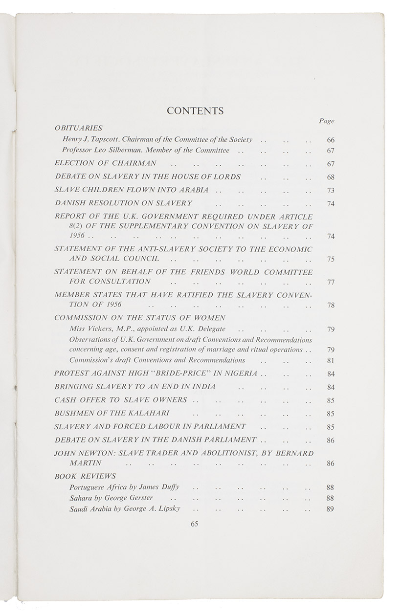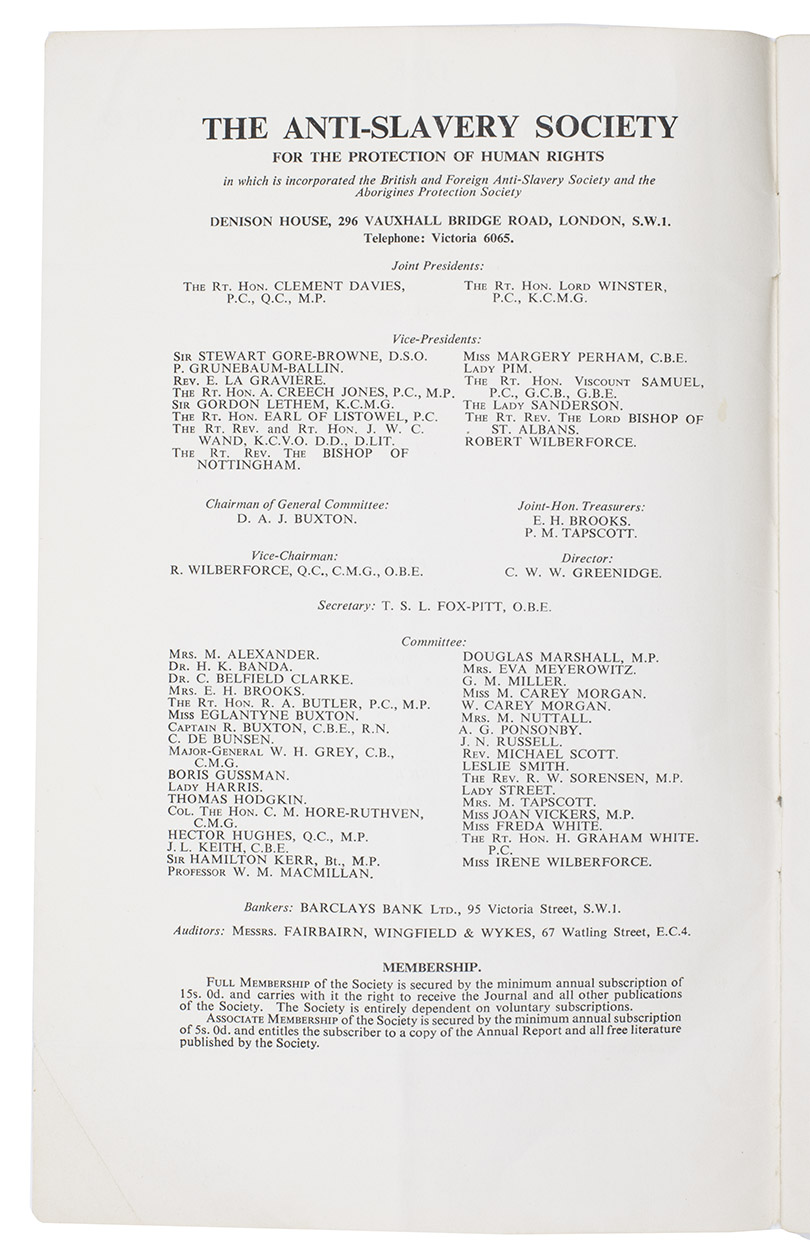 London, Anti-slavery and Aborigines Protection Society, 1961. Original pictorial wrappers. 65-88 pp.