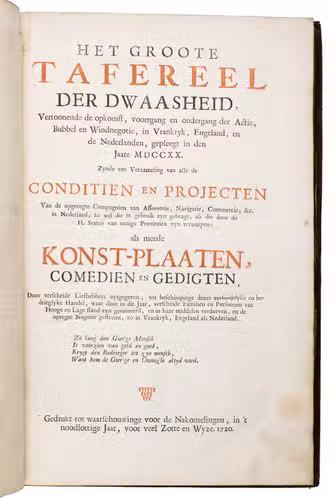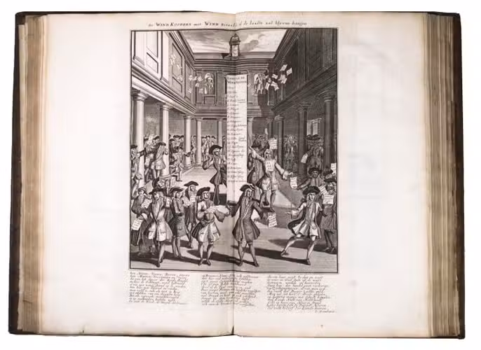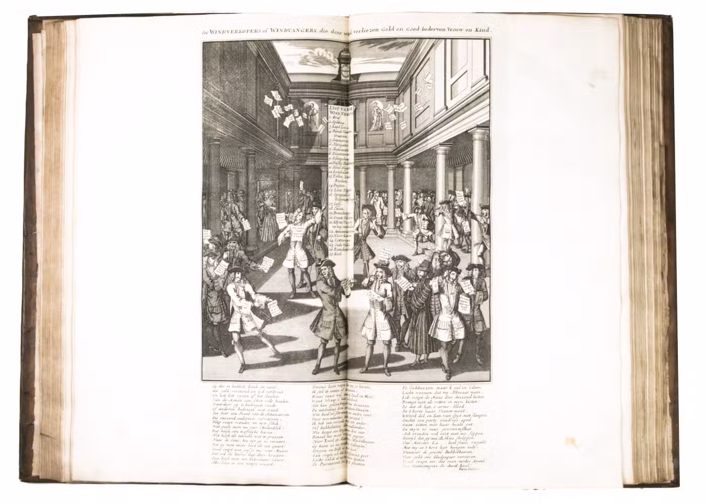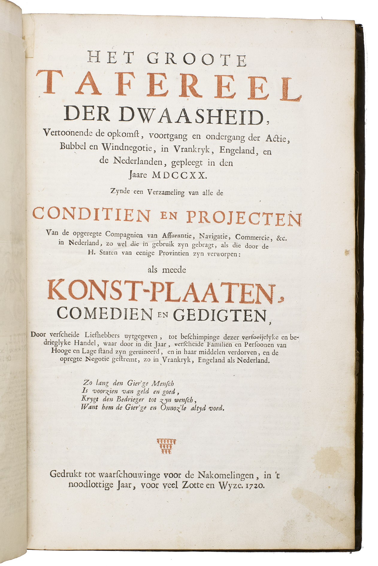 Third edition of one of the most remarkable works in the history of finance. Few books equal the visual power, satirical brilliance, or bibliographical complexity of Het groote tafereel der dwaasheid. First published in Amsterdam in 1720, in the very year of the financial collapses it depicts, this extraordinary work stands as the most ambitious and visually arresting contemporary response to the speculative mania that engulfed France, England and the Dutch Republic.