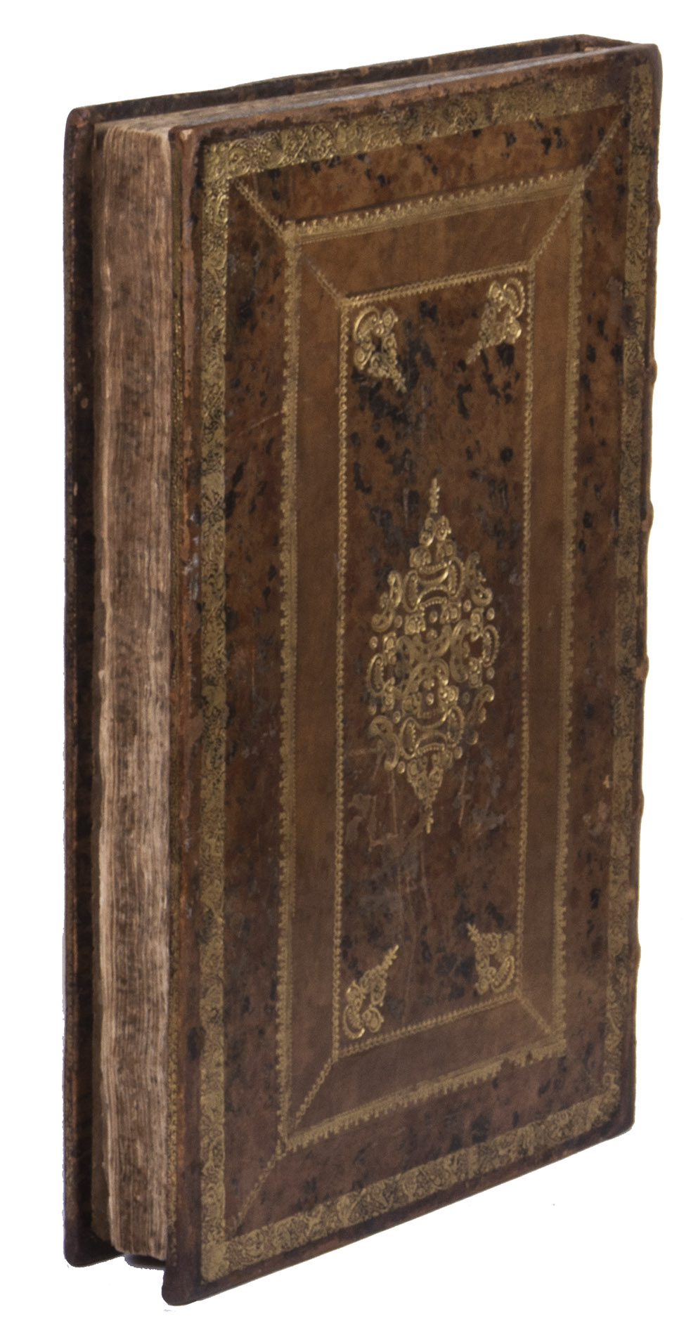 [Amsterdam], 1720. Folio (ca. 39 x 25.5 cm). With the title-page printed in red and black and 76 engraved plates, mostly double-page and several are larger folding sheets, including several maps, the plate with the complete set of 52 playing cards, and an extra copy of plate 18 (Muller) loosely inserted at the front of the work. Contemporary elaboratly gold-tooled mottled calf, sewn on 6 supports with corresponding raised bands on the spine and with the title lettered in gold on the spine, gold-tooled board edges, marbled edges, bound by the so-called Double Drawer Handle Bindery in Amsterdam (between 1720 and 1742? - Storm van Leeuwen) [1], [1 blank], 25, [1], 52, "31" [= 29), [1 blank], 8, 10 pp. and engraved ll.