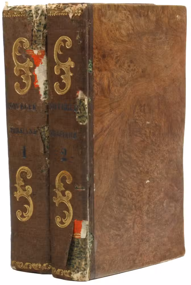 Venice, Santini, 1810. 5 volumes bound as 2. 12mo. Contemporary gold-stamped half brown cloth, marbled paper sides, with the title and volume number stamped in black on the spine. 172, 168, 176; 179, [1], 200 pp.