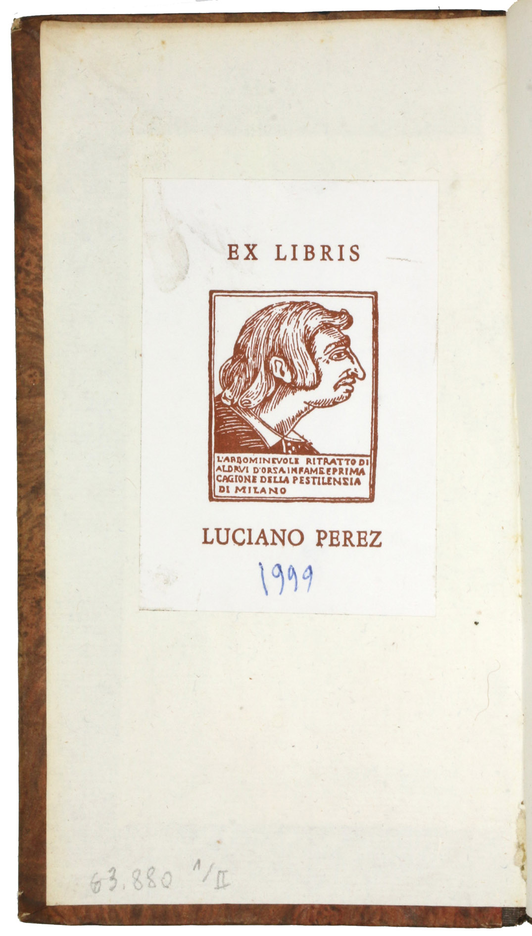 With the bookplate of Luciano Perez mounted on the front pastedowns. The spines (incl. the hinges) are worn, with some loss of material on both spines. A slight stain in the upper blank margin of a few pages of vol. 4. Otherwise in good condition. OPAC SBN IT\ICCU\TO0E\074381 (11 copies, incl. 5 incomplete); WorldCat 57504717, 1040084656 (2 copies, incl. 1 incomplete); cf. this edition not in Chauvin.