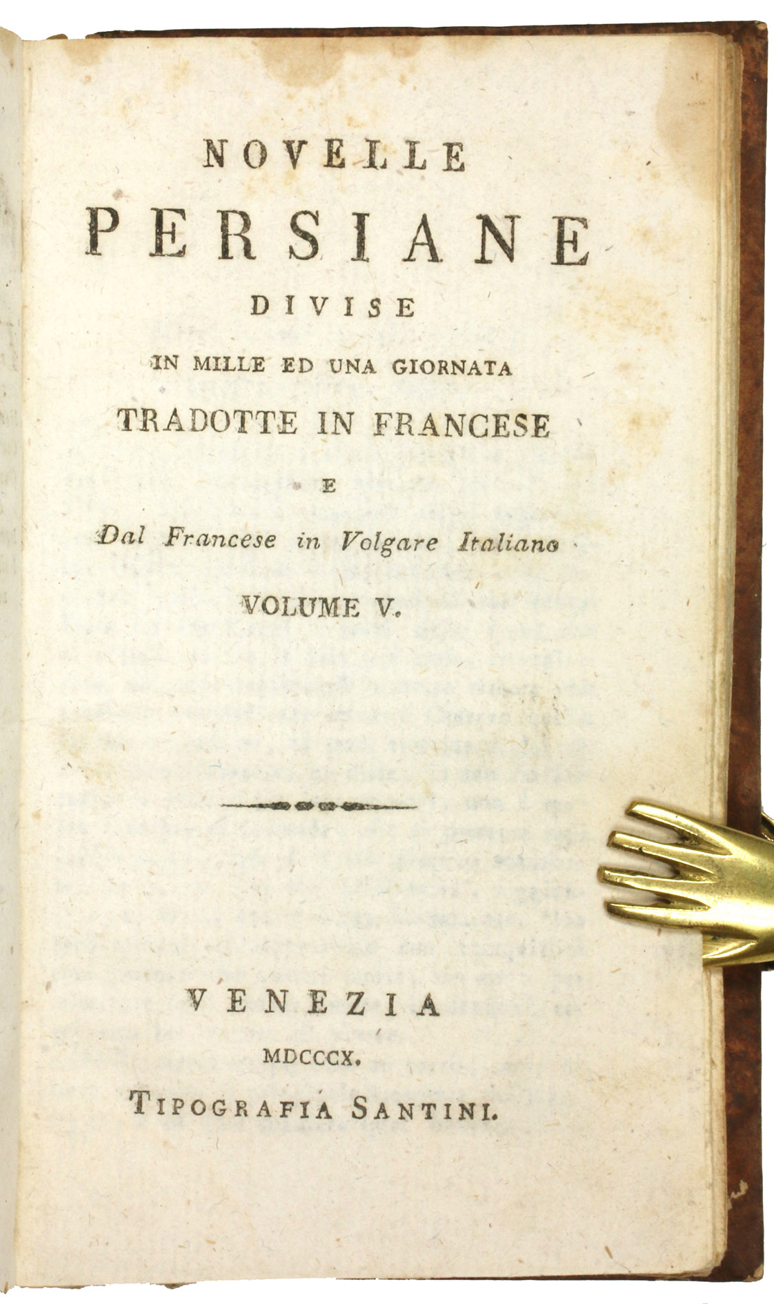 Novelle persiane divise in mille ed una giornata, tradotte dal francese e dal francese in volgare italiano. Vol. primo [-quinto].