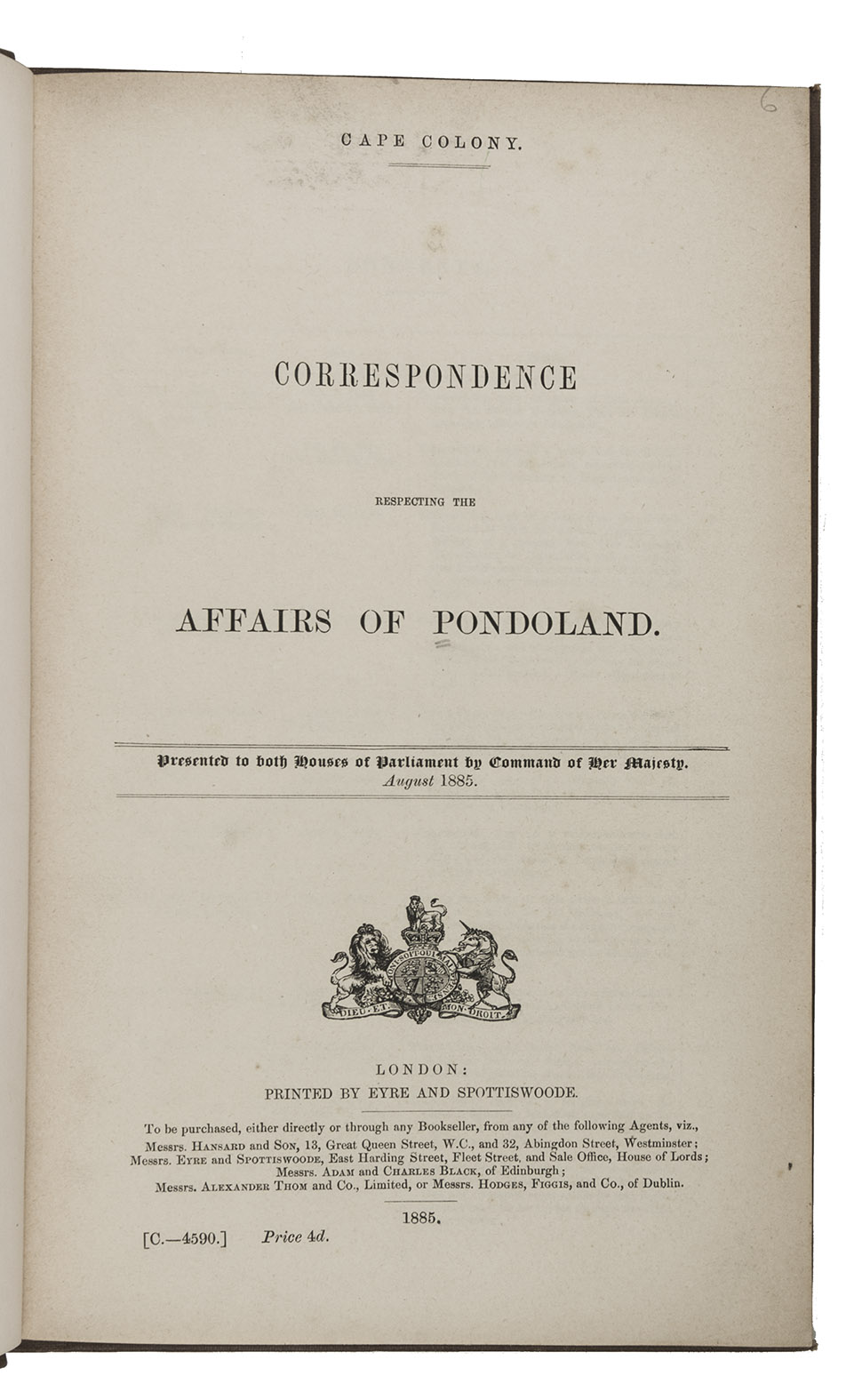 - Correspondence respecting the affairs of Pondoland [3 parts].