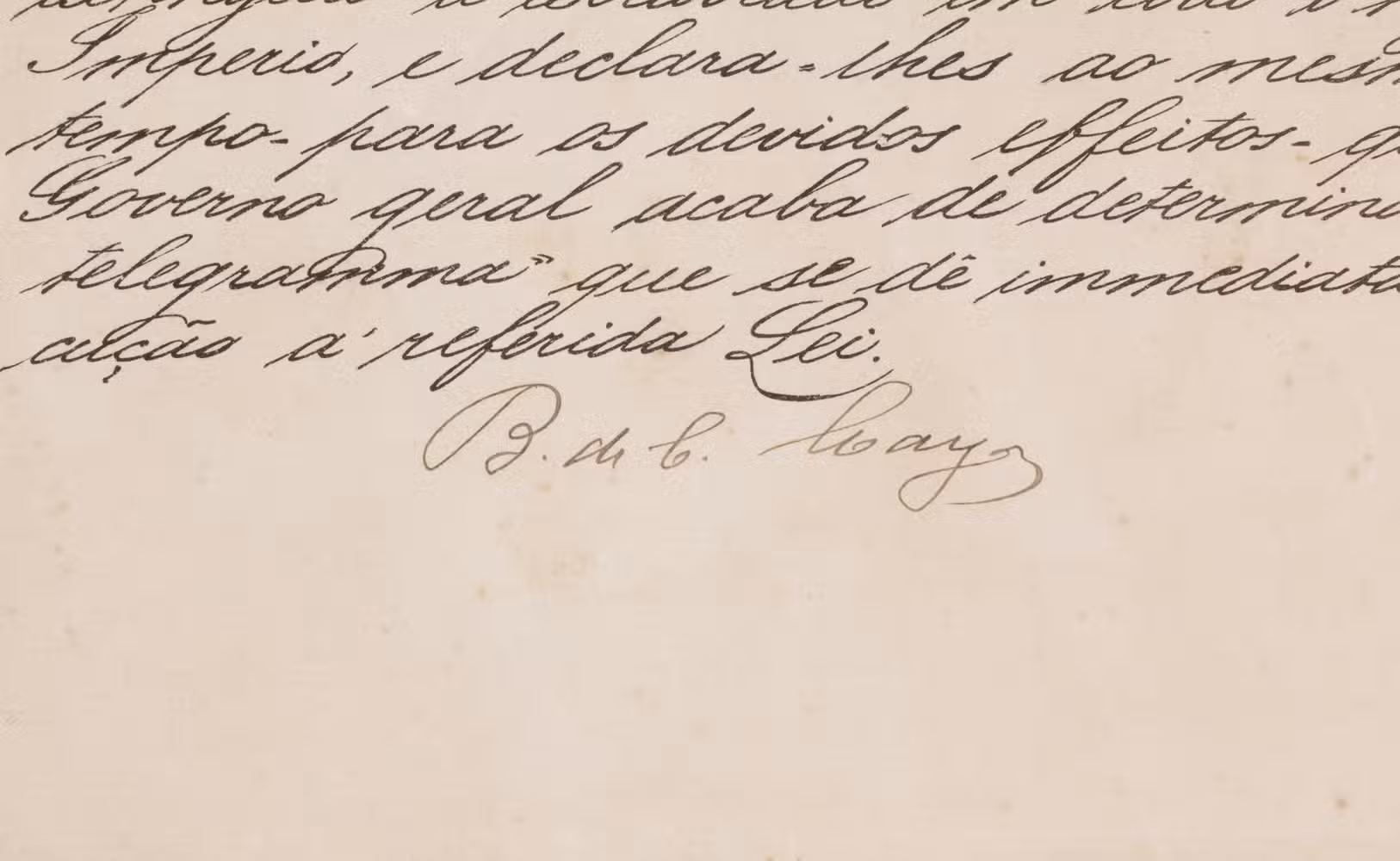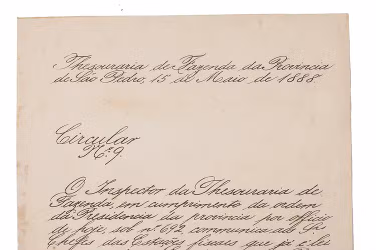 Written a mere two days after the signing of the Lei Áurea (Golden Law) on 13 May 1888, the document was circulated to local administrative boards known as the Mesas das Estradas Reais. Its purpose was both declarative and imperative: to formally announce that slavery had been abolished throughout the Brazilian Empire, and to instruct provincial authorities that the law was to be enforced immediately and without exception.