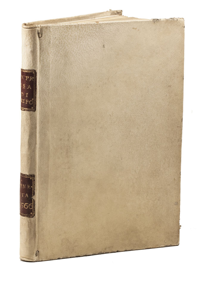 Venice, Francesco Rampazetto, 1566. 4to. 18th-century(?) sheepskin parchment. [7], [1 blank], 88, [4] ll.