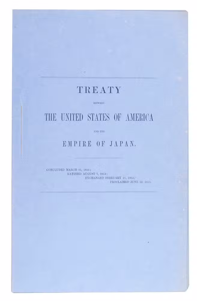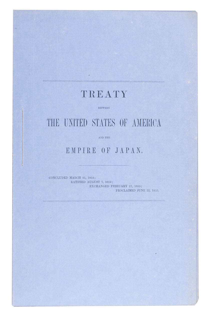 Second recorded copy of the Kanagawa Treaty of Friendship, resulting in the opening of Japan to trade with the West. The American expection to open Japan was undertaken at the suggestion of its leader, Commodore Matthew Calbraith Perry (1794-1858). ''The key document caried by Perry to Japan was a letter to the Emperor from President Fillmore, in which the President requested Japan to open relations, cooperate in the development of trade, assist distressed whalers and provide bunkering and supplies for ships on the California to China run.