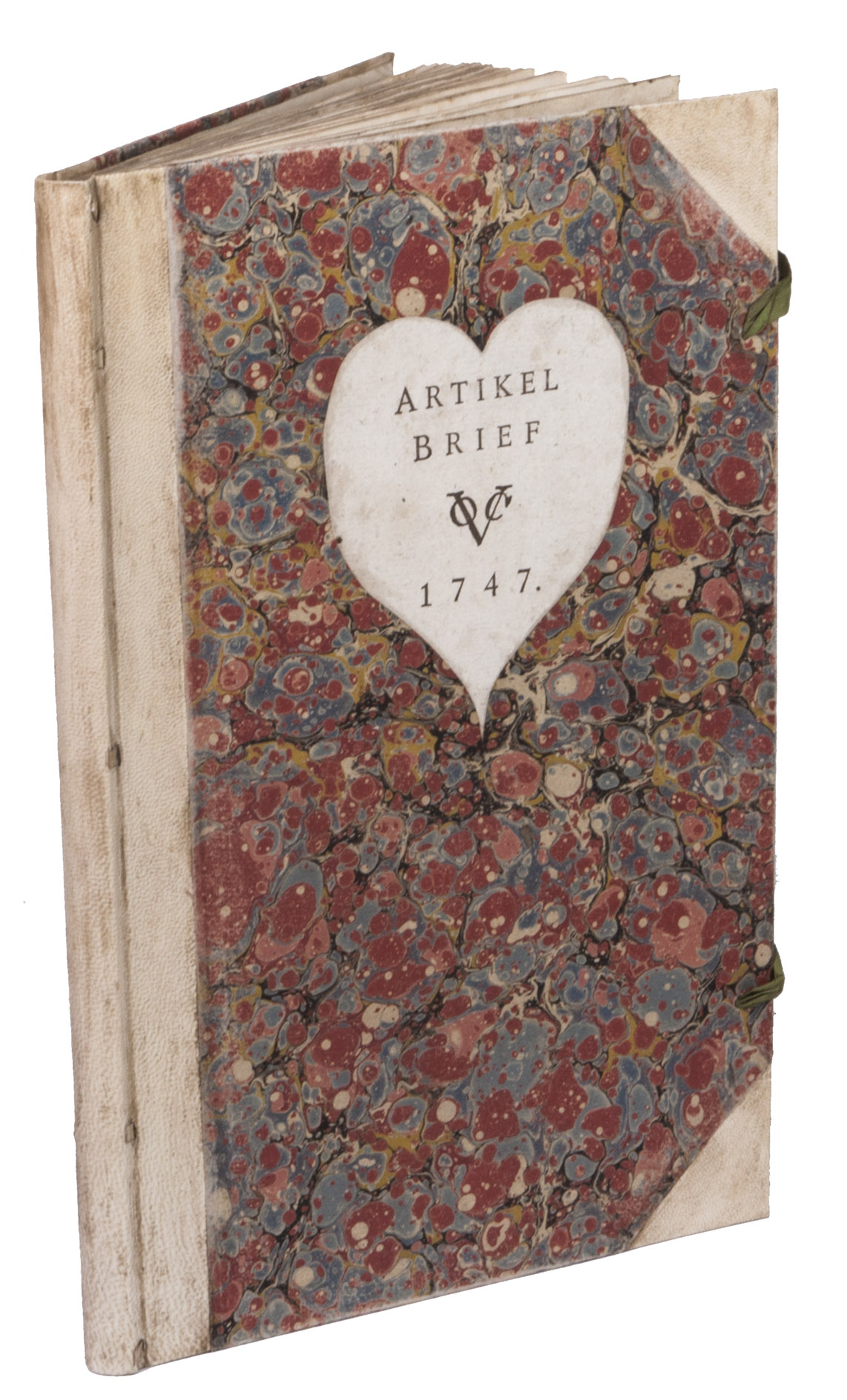 Very rare work with the terms of employment of the Vereenigde Oost-Indische Compagnie (VOC). It contains 121 clauses with rules of conduct and an extra chapter with formularies of oaths. This second, revised edition was published after some changes had been made to the rules in 1747. This VOC publication is very rare. It is available in just a few libraries and we have only been able to trace one other copy in sales records of the past 100 years.