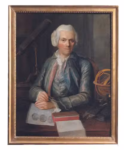 Beautiful contemporary portrait of the famous French astronomer Joseph-Jérôme (le Français) de Lalande (1732-1807), depicted as a middle-aged man around 1780.