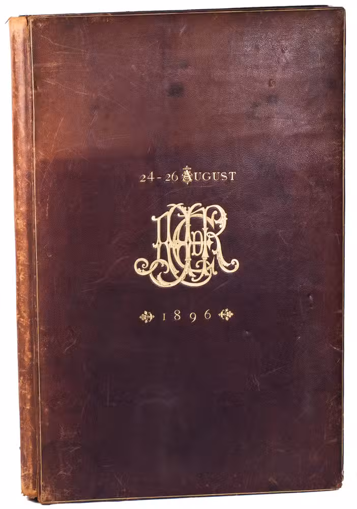 A sumptuously executed wedding album presented to the Dutch groom August Janssen (1865-1918) and his bride Ella de Ridder (1877-1951), produced in honour of their wedding celebrations which took place on 24-26 August 1896 in Frankfurt am Main, Germany. Most of the album concerns their "Polterabend", the wedding-eve party similar to present-day bachelor-/bachelorette parties except for the bride and groom joining together in the festivities. The main event now associated with a Polterabend is the smashing of porcelain by the wedding guests in order to bring luck to the couple's marriage, but in general the evening is filled with plays and songs written and performed for the couple by their family and friends.