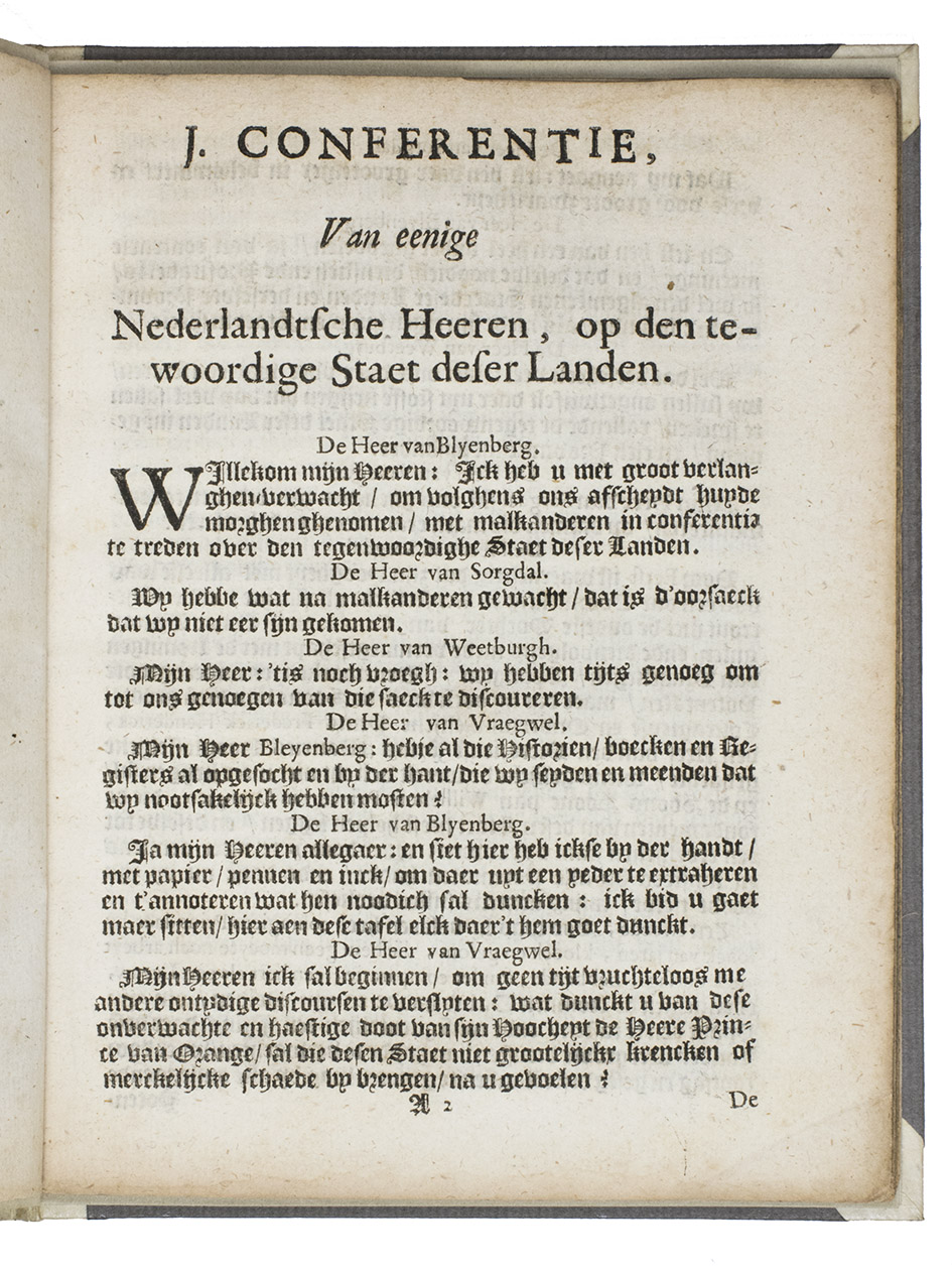 I. [= Eerste] conferentie van eenige Nederlandtsche heeren. Op den tegenwoordigen staet deser landen.