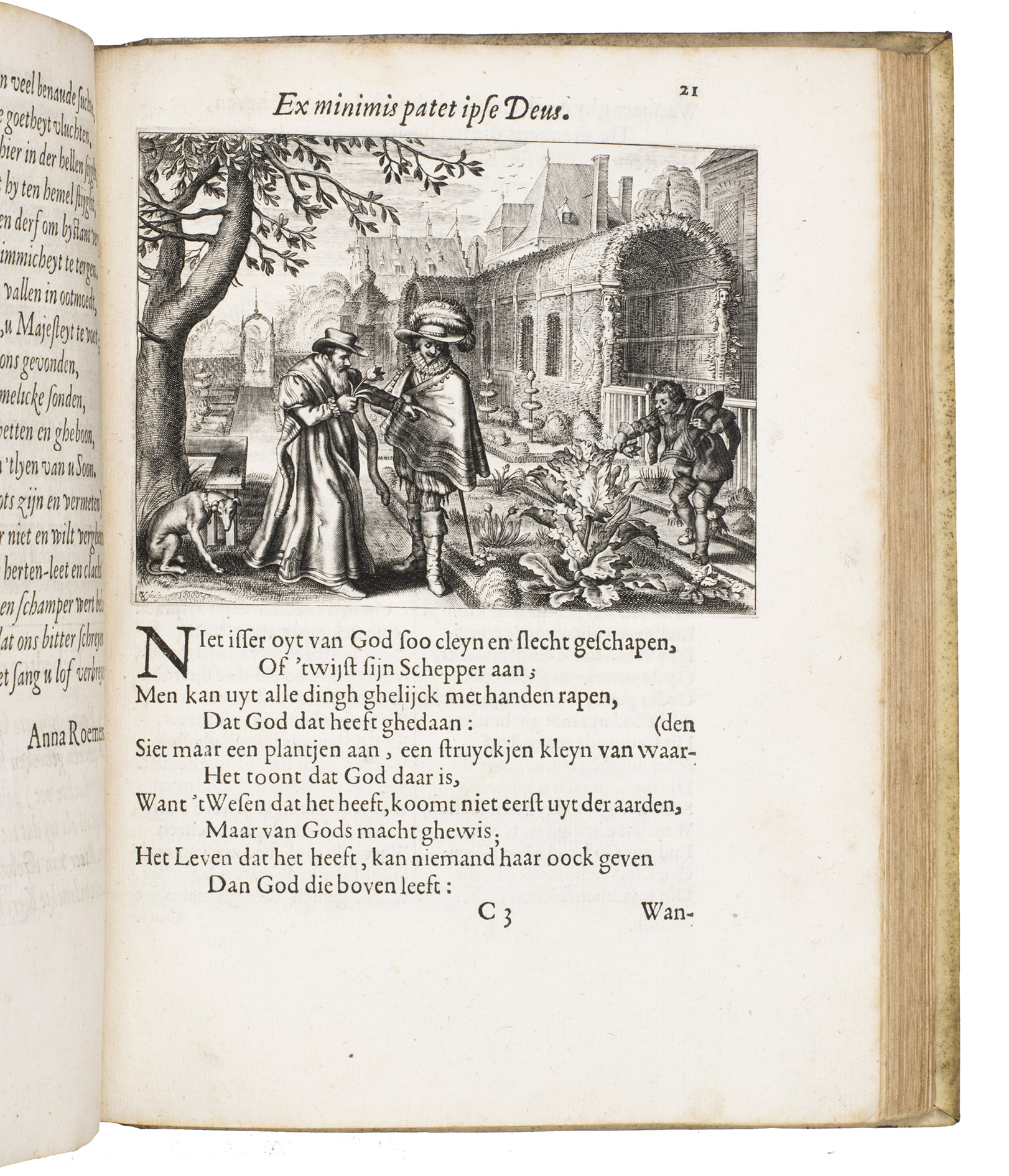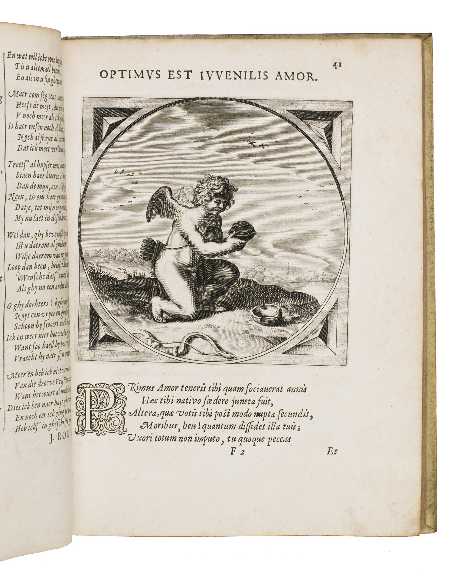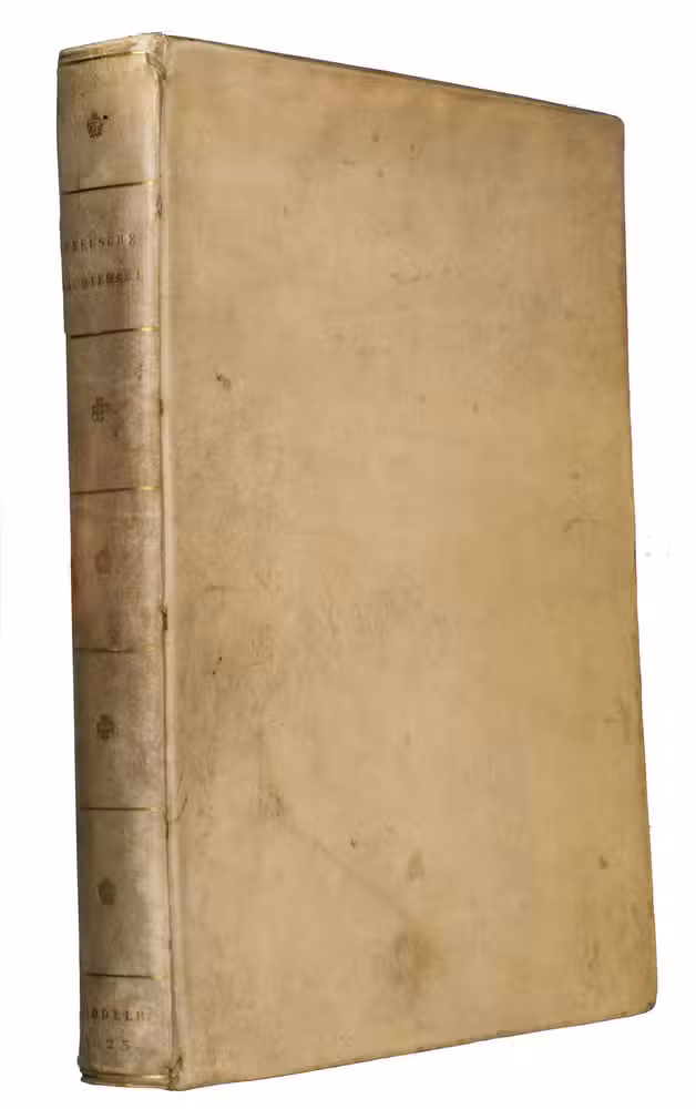 With the bookplate of explorer Frank Linsley James (1851-1890), and the manuscript ownership annotation of Rev. Henry White of Lichfield (dates unknown), dated 1819, on the front pastedown, the ex libris stamp of Nanne Ottema (1874-1955) on the second flyleaf. The vellum is slightly soiled. The leaves are lightly browned, occassionally slightly foxed in the margins, the lower corner of the last 2 pages has been restored. Otherwise in good condition. Landwehr, Emblem and fable books, 588; Praz 540; Scheurleer pp. 149; STCN 831125780; USTC 1026749; Waller 1256; cf. Nagtglas, pp. 818-22 (on the Vande Venne family).