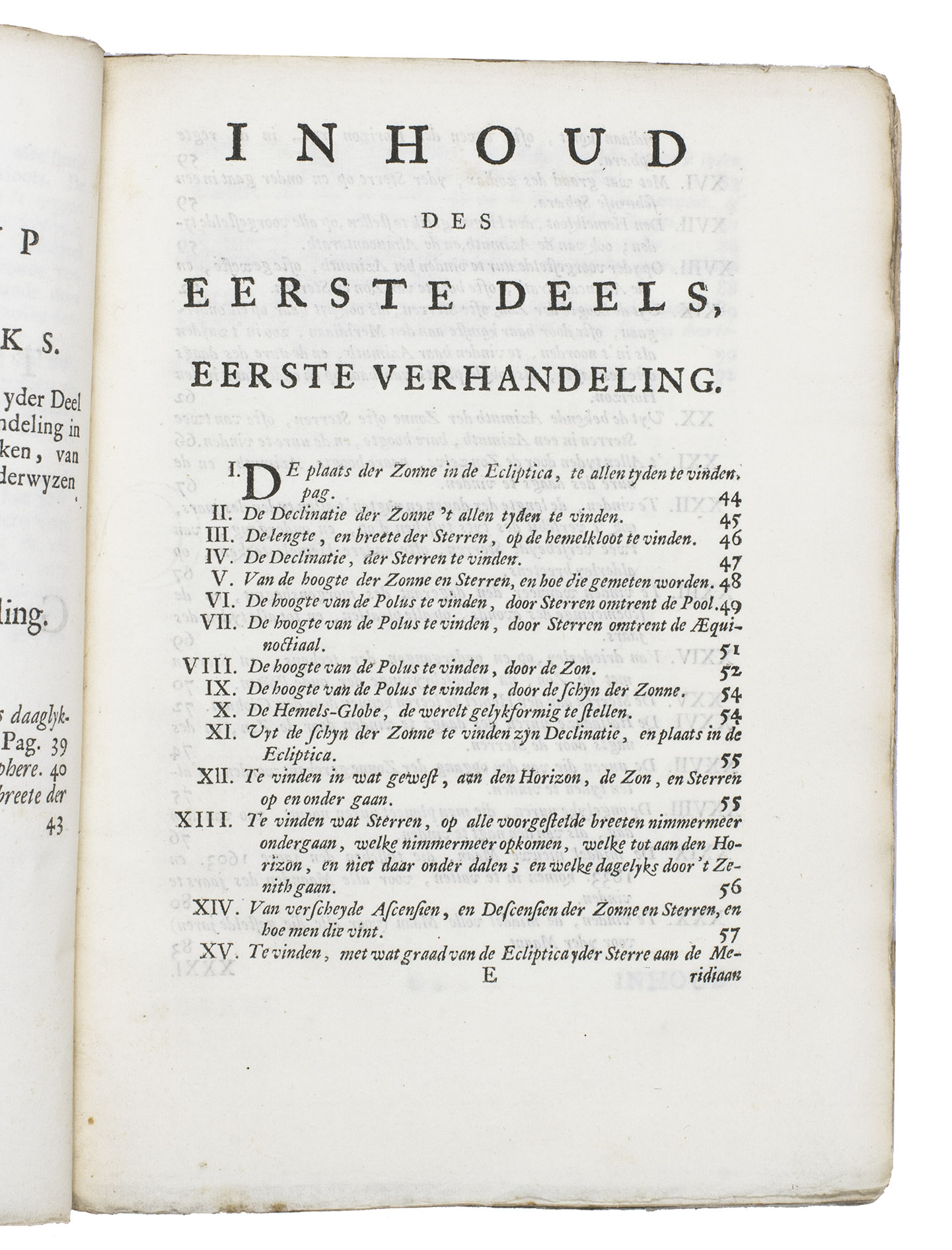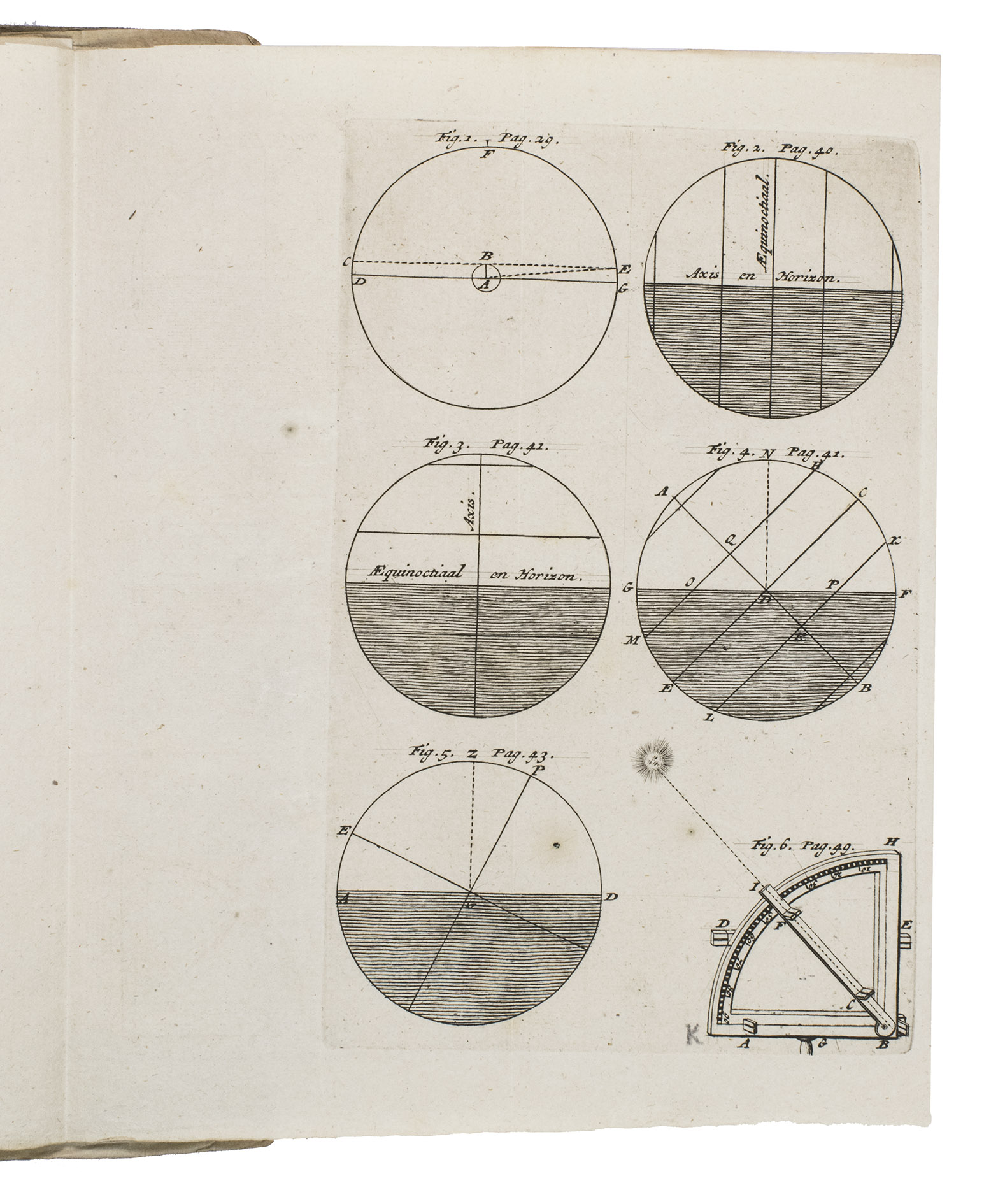 Gerard Valk (or Valck, 1652-1726) was a Dutch engraver, publisher, cartographer, and globemaker. He worked closely together with his son Leonard (1675-1746) and his brother-in-law, the engraver, cartographer, and publisher Petrus Schenck (the Elder, 1660-1711). Their work, especially the globes, was largely innovative, based on the latest scientific insights and calculations. The present publication functions as an explanation to the production and use of globes, including information on the declination of the sun and stars, how to measure when the sun or certain stars or other celestial bodies rise and set during a calendar year, when to expect a new moon in the years 1603 to 1833, how to determine the exact location based on latitude and longitude of any place on earth, how to accurately depict the world on a globe, and much more. The work is partly based on Planetolabium, dat is planeeten-wyzer (1700) by the German mathematician and astronomer Lothar Zumbach von Koesfeld (1661-1727).