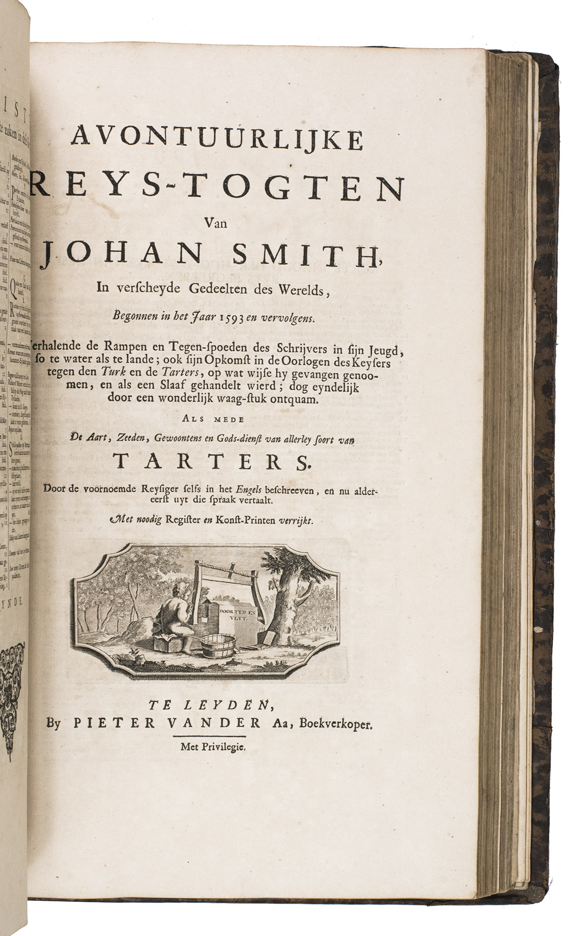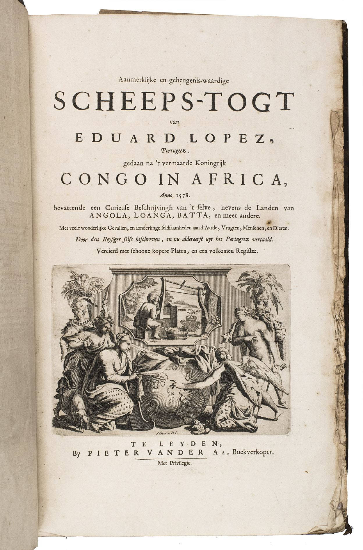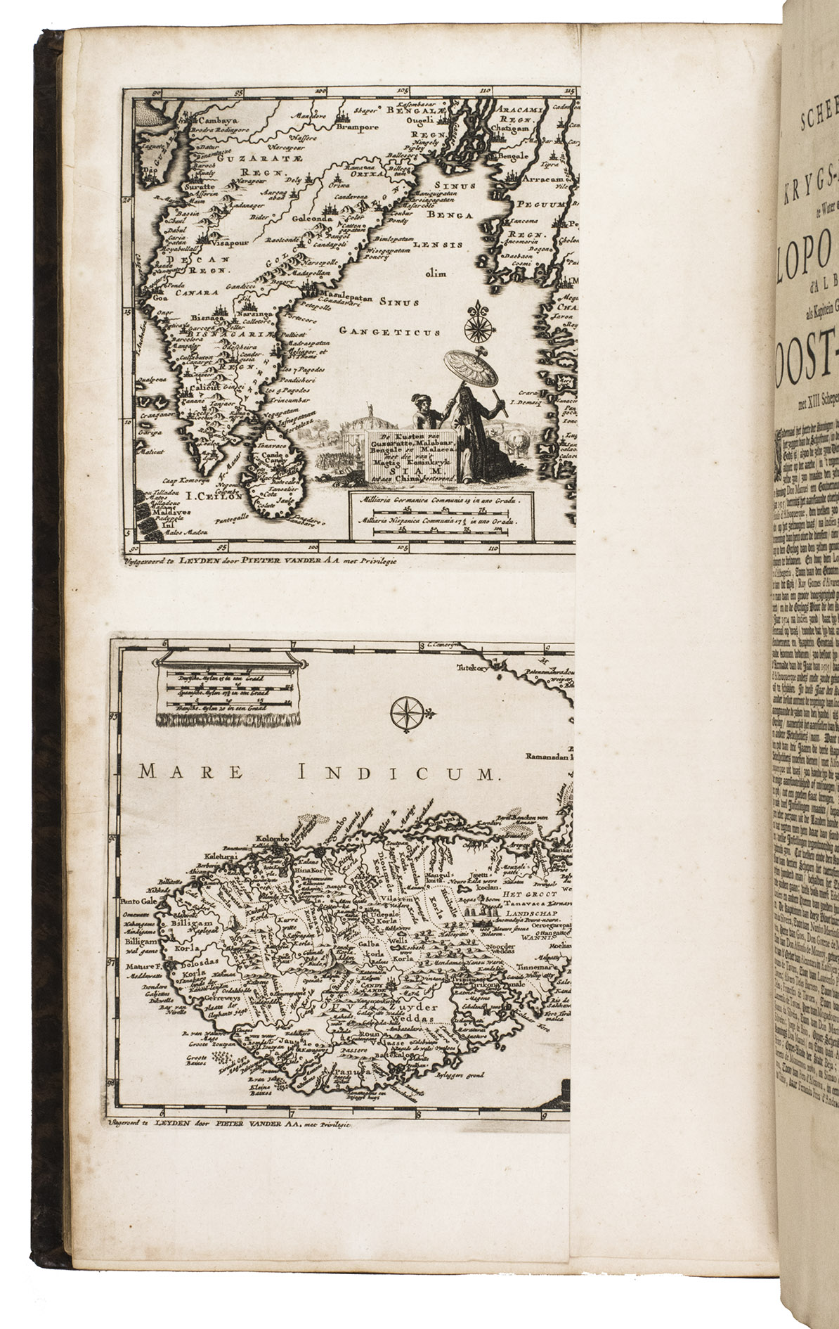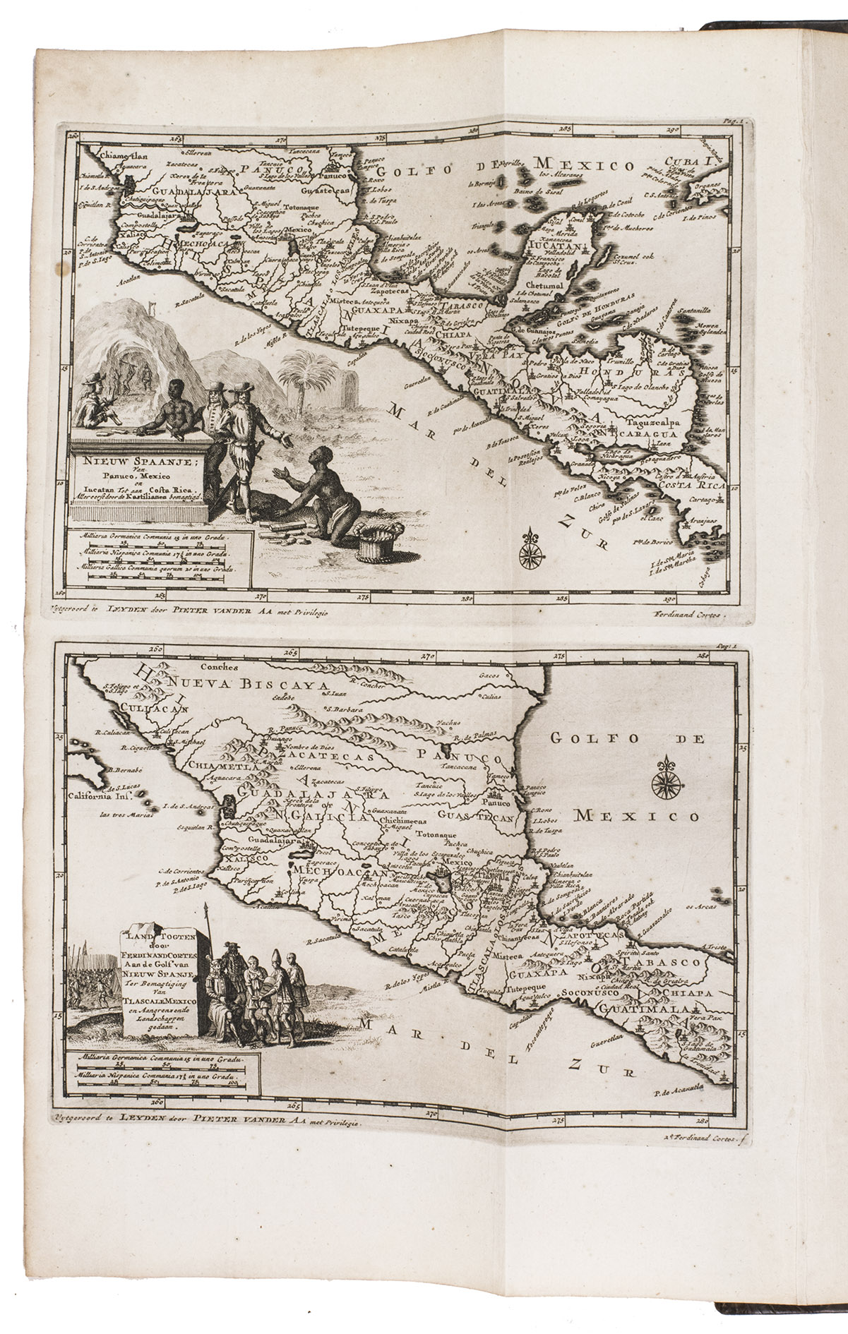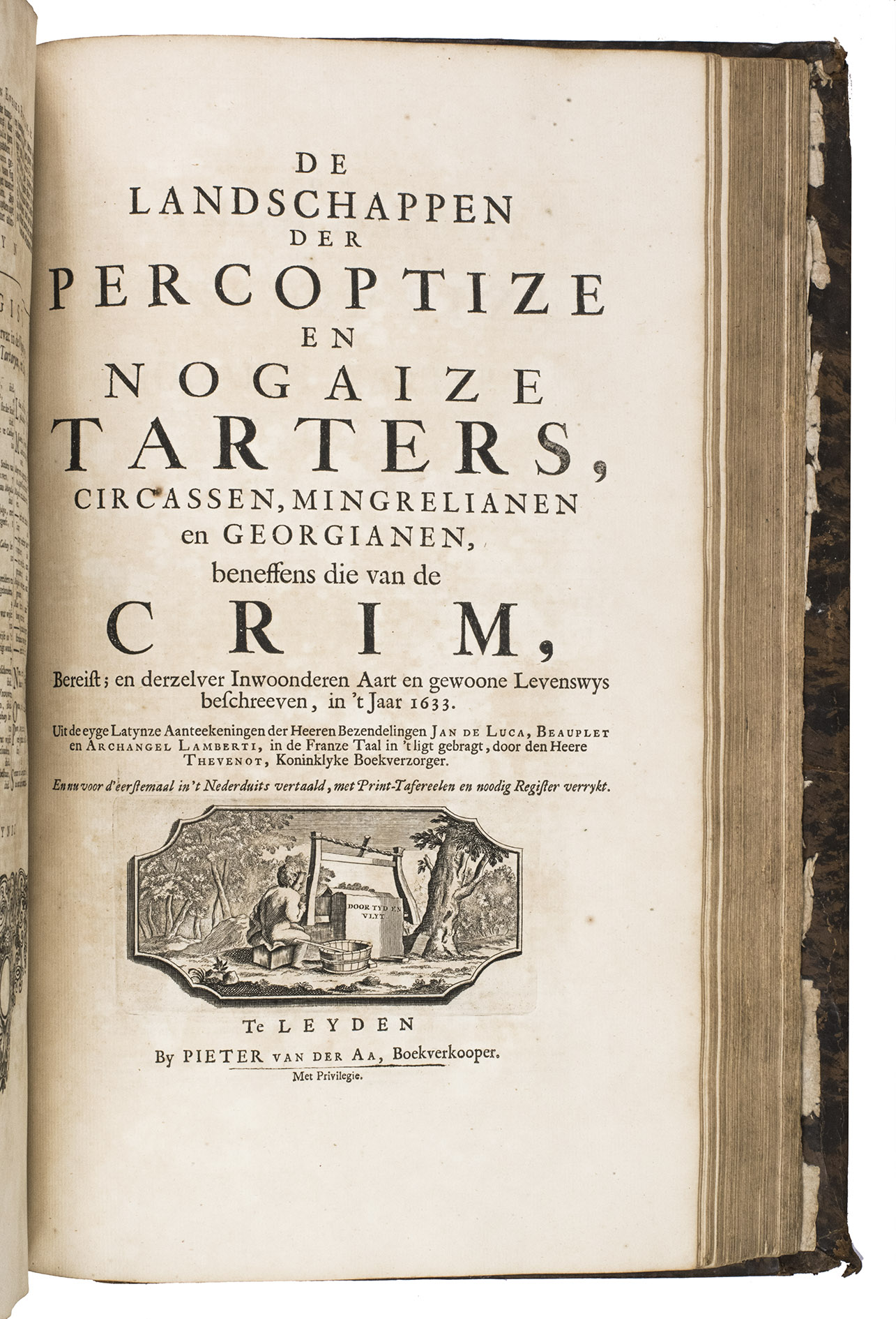 The first and last few leaves of two of the volumes are slightly frayed at the edges, the work is occasionally slightly browned, with minor water stains at the end of 2 volumes. Otherwise in very good condition. Cordier, Japonica, p. 32 (note); Cordier, Sinica, 1942f; Muller, America, 1889; Sabin 3 (note); Tiele 10; cf. Hoftijzer, P.G., Pieter van der Aa (1659-1733), Leids drukker en boekverkoper (1999).