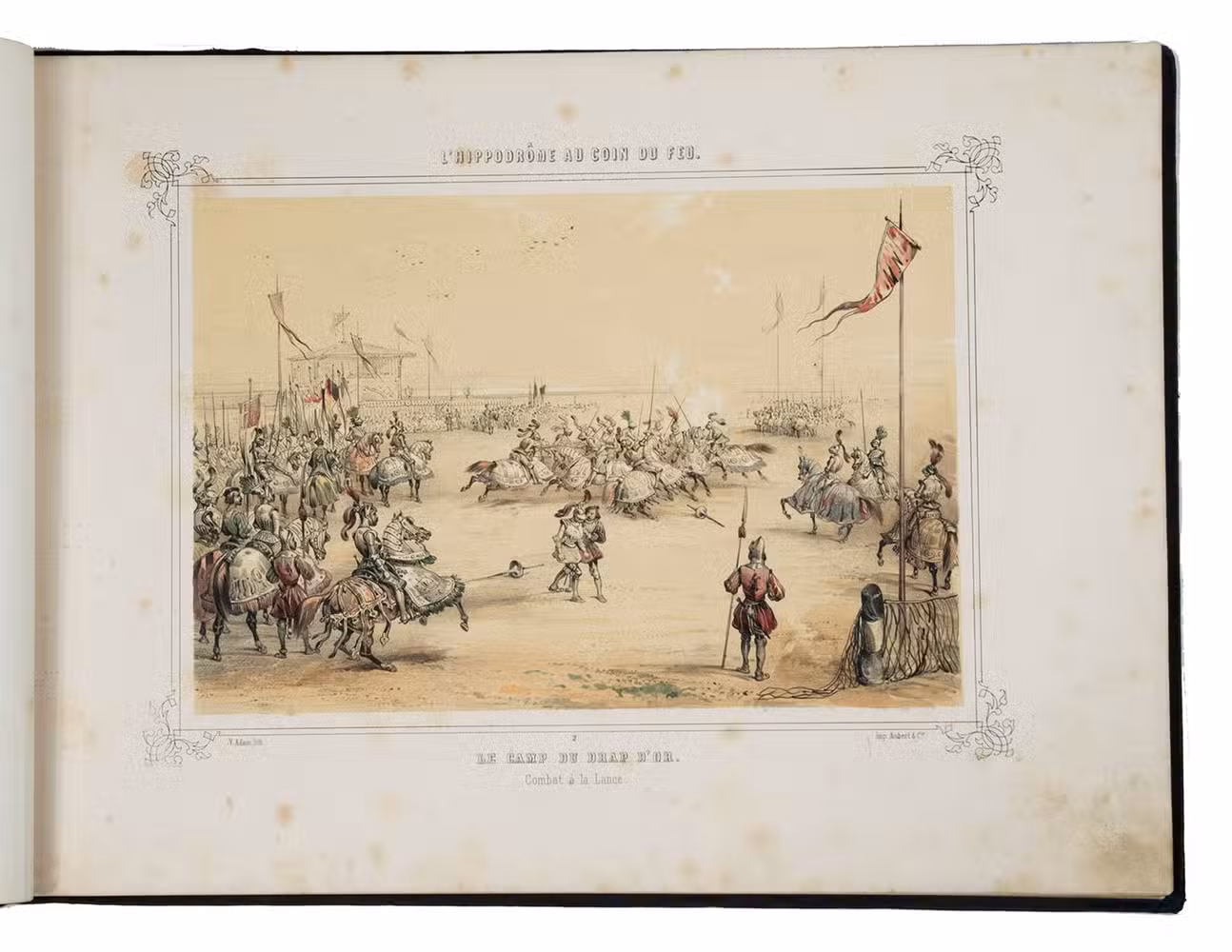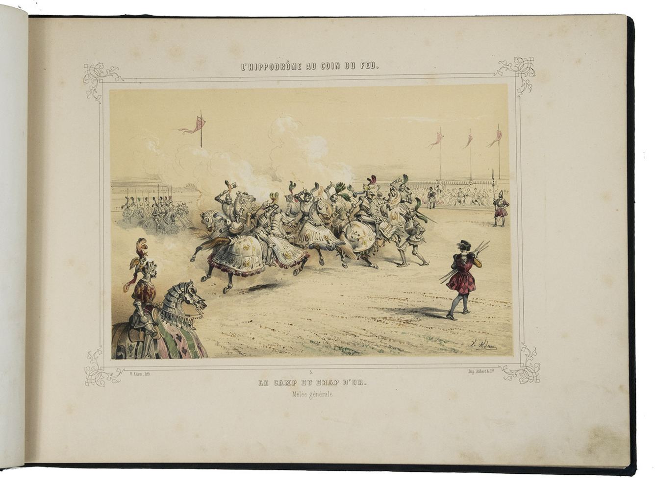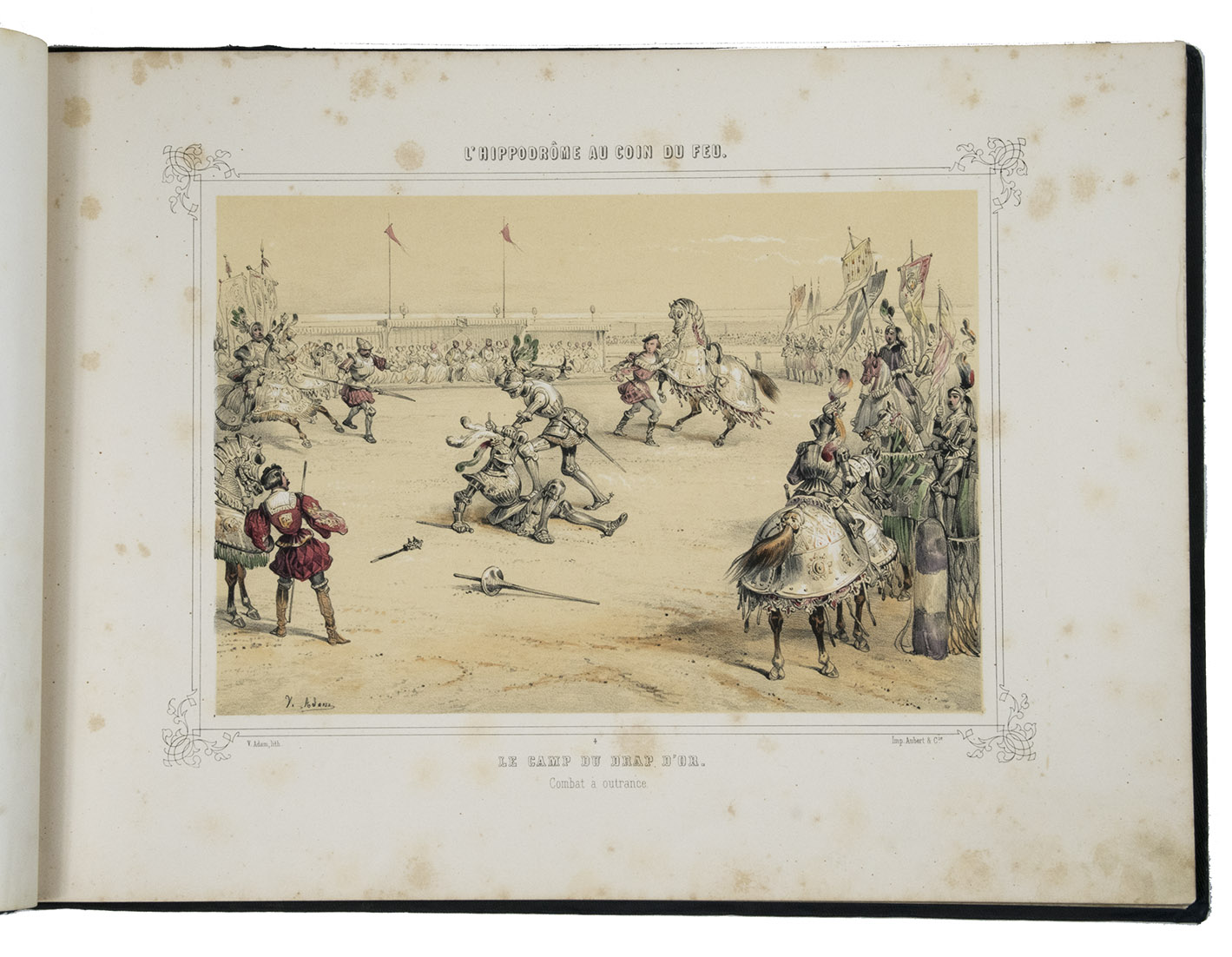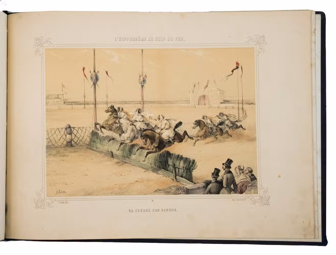 A fine example of Adam's expertise in lithography. The plates depict a variety of unusual equestrian racing scenes including chariot racing with women driving, and monkeys riding horseback.