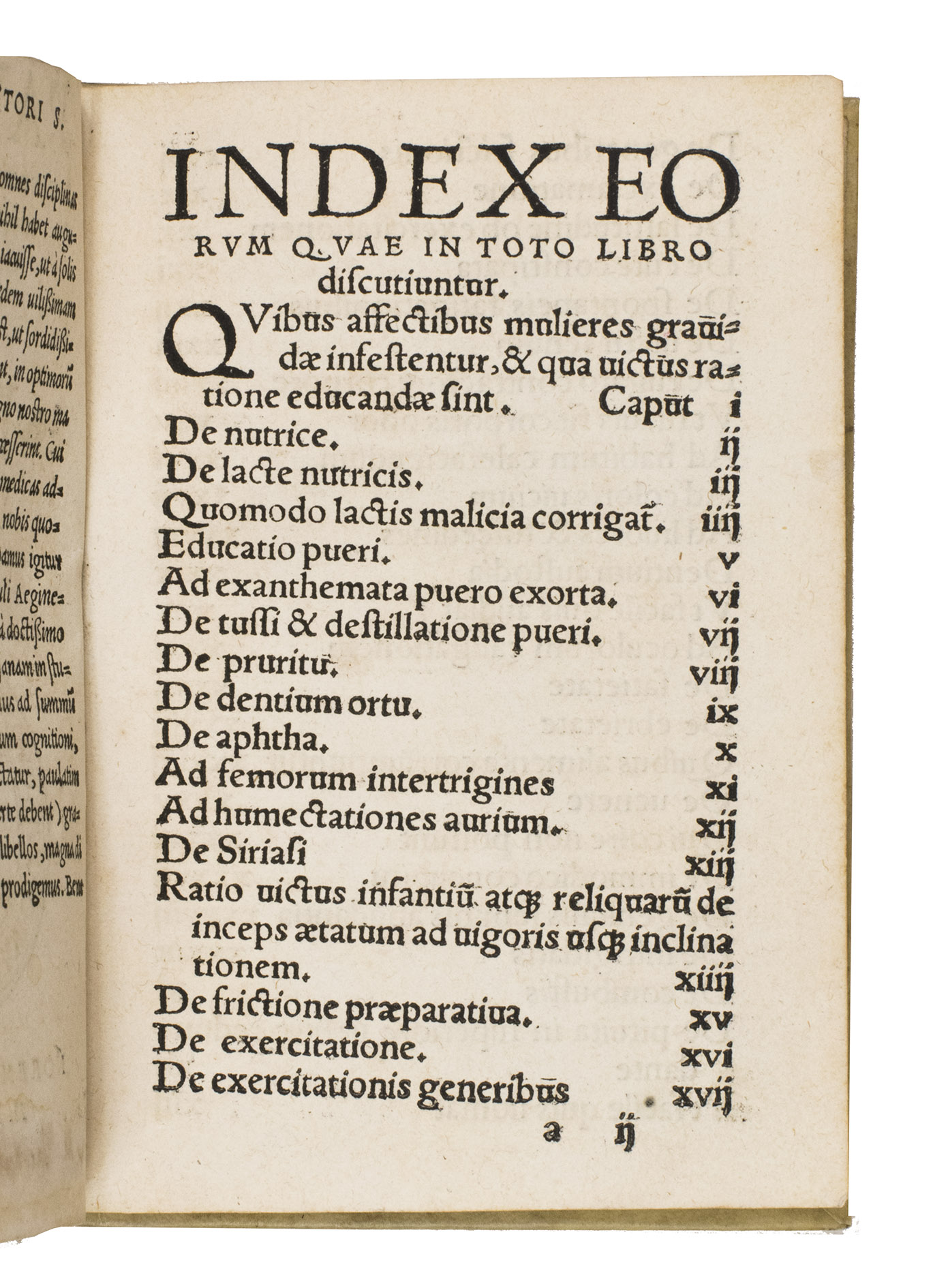 With remnants of a removed ownership annotation and stamp on the title page. The work is somewhat browned throughout and has been cut somewhat short, with the loss of a few letters of the printed marginal notes on the last few leaves. Otherwise in good condition. Bezzel 897; Durling 3572; USTC 683285, Vander Haeghen I, 85; VD16 P 1035; Wellcome I, 4860; not in Adams; BM STC German; De Reuck; cf. Krivatsy, P., "Erasmus' medical milieu", in: Bulletin of the history of medicine, vol. 47 (2), 1973, pp. 113-154.