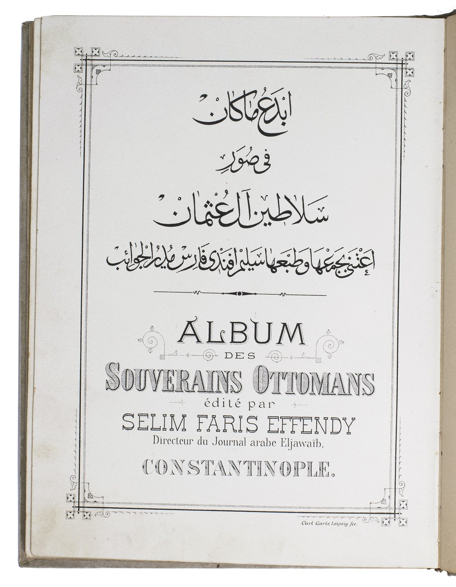 Abda' ma-kan fi suwar Salatin Al 'Uthman. Album des souverains Ottomans édité par Selim Faris Effendy.