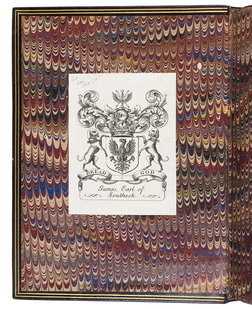 (Colophon: Venice, Johan Baptist Sessa, 12 February 1502). Small 4to (21 x 15.5 cm). With a large woodcut portrait of the author at his desk. Gold-tooled maroon morocco (ca. 1870/90?) for James Carnegie, 9th Earl of Southesk (1827-1905), gilt edges. 16 ll.