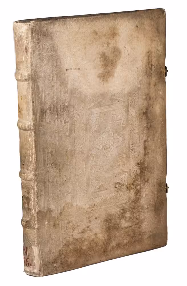 [Augsburg, Günther Zainer, ca. 1475/1476]. Small folio. Set in a hybrid roman type with gothic elements (a single column of 43 lines per page plus running heads), with the first 3 lines, including the title, in a slightly larger rotunda gothic. With all initials supplied in manuscript in red, rubricated throughout. Contemporary, richly blind-tooled vellum over wooden boards, two brass clasps, blue edges, "Nr. 56" in red ink written at the foot of the spine. [139] ll.