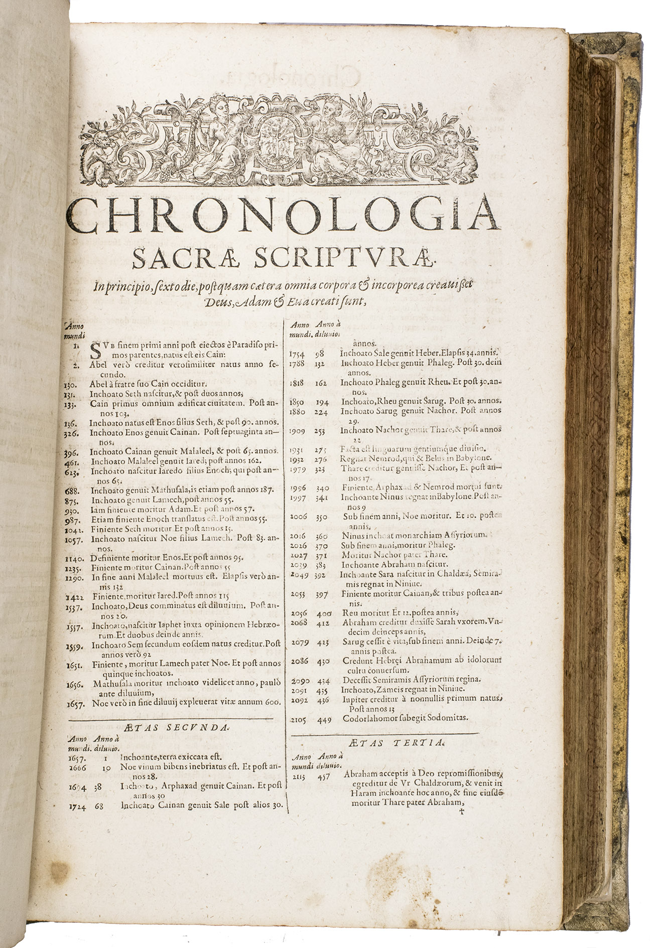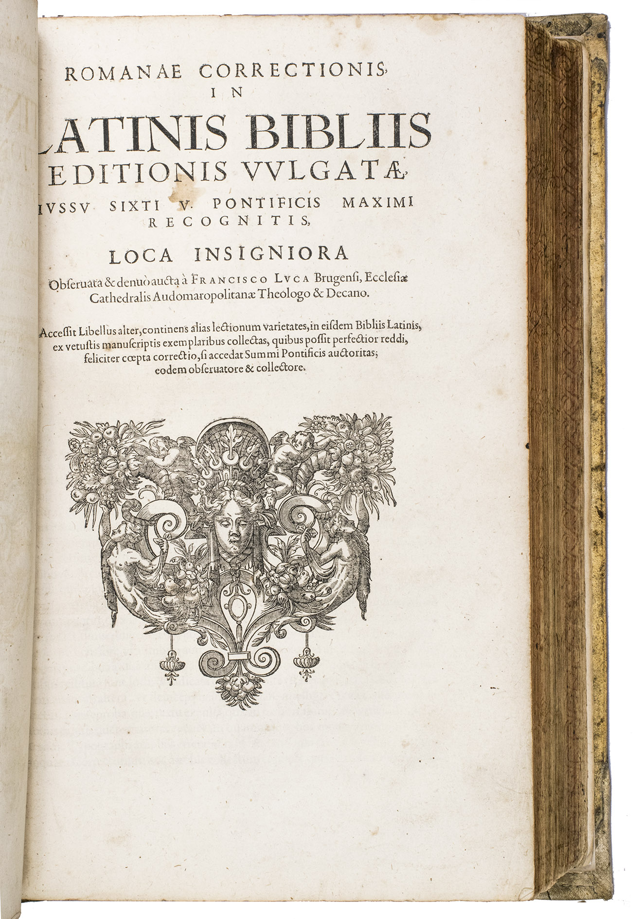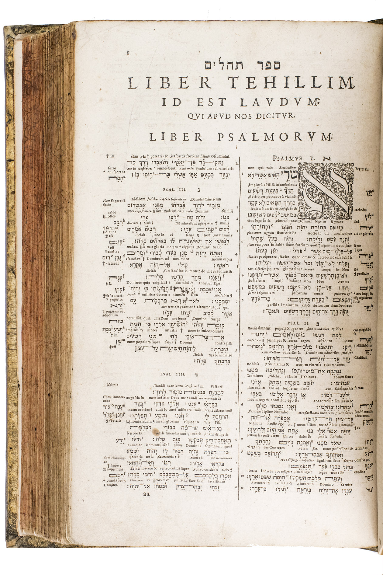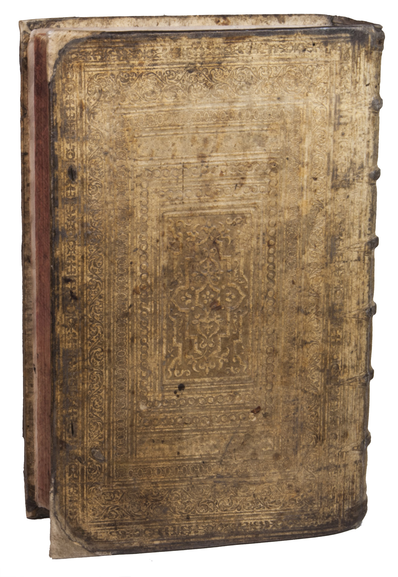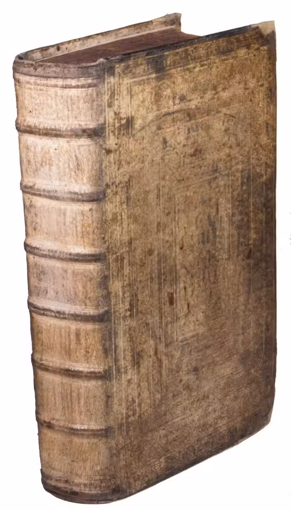 [Geneva], Petrus de la Rouière, 1618. 2 works in 1 volume, both in 4 parts. Folio. With numerous decorated woodcut initials and woodcut headpieces, the work is printed in Latin, Greek, and Hebrew type. Contemporary blind-tooled vellum with remnants of closing ties, red gauffered edges. [8], 271, [1 blank], [50], [2 blank], [4], 70, [2 blank], 167, [1 blank]; 183, [1], 283, [1 blank], 84, 203, [1 blank] pp.