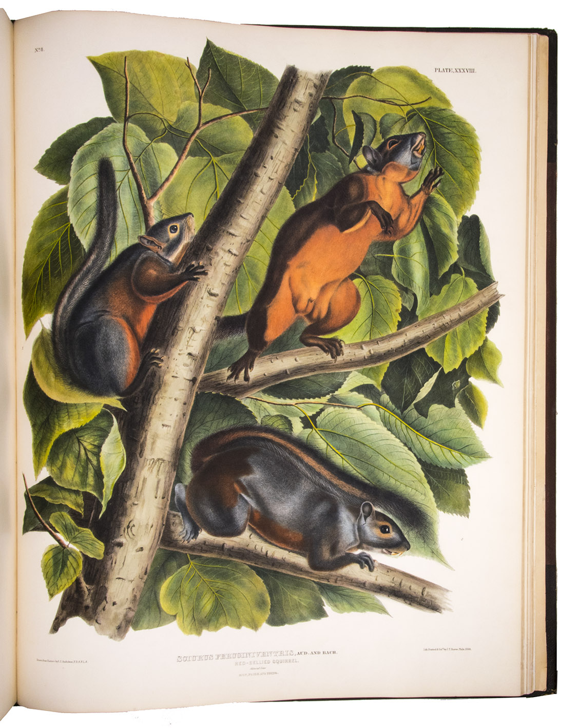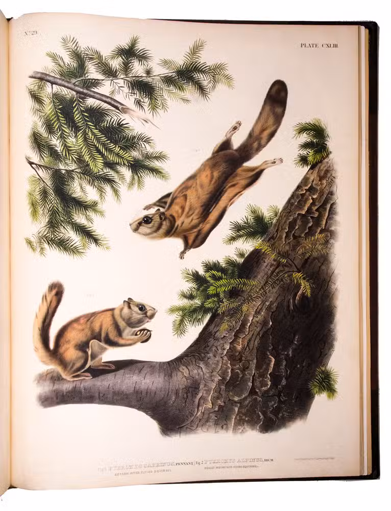 After the publication of his highly acclaimed Birds of America, Audubon settled on the Hudson River and began working on the present series to document the animal life of North America. The plates were first published in 30 parts of 5 plates each and three separately published accompanying text volumes, written by John Bachman, appeared between 1846-1854. A second edition was published in 1856, but "the first edition is by far the best" (Sabin).