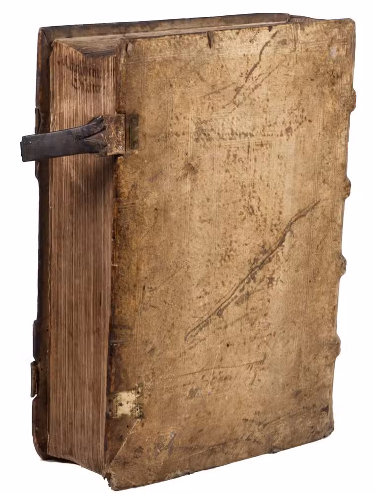 Contemporary blind-tooled pigskin over wooden boards, with 1 brass clasp and remnants of a 2nd. [1 blank], [14], [1 blank]; [146]; [192]; [192], [5 blank] ll.