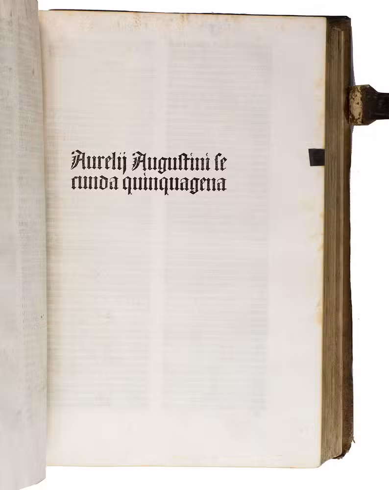 A complete copy of one of Saint Augustine's chief exegetical works. The present Amerbach edition is only the second time Augustine's explanation of and commentary on the Psalms was ever printed. The first time was in ca. 1485, only a few years earlier, and was printed by an anonymous press in the Low Countries.