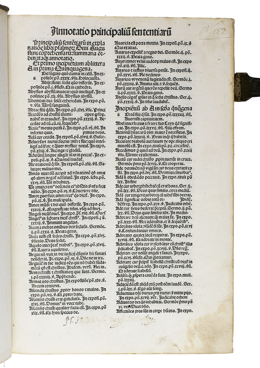 Explanatio Psalmorum. [Incipit:] Annotatio principaliu[m] sententiariu[m]/ principaliu[m] sente[n]tiariu[m] in expla-natione psamo[rum]...