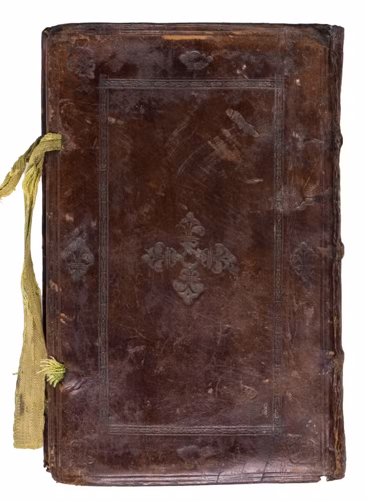The binding shows the coat of arms of Christopher Popel the elder of Lobcowicz (1513-1590), or Krystof starsi Popel z Lobkowicz, who was part of the Bílina branch of the Popel lords from Lobkowics, a courtier of the Archduke Arnosta (1553-1595), and a member of the war council. The initials on the boards are an abbreviation of his typical signature: Christophorus Baro a Lobcowicz anno aetati. Five other volumes with the same coat of arms, initials and date as our copy are known, all identified to have belonged to the same owner. Some of the bindings, including NUSK 3509 and 3514, have been attributed to the "Bookbinder with German tools XVII" (NUSK 95), working in Northwestern Bohemia around 1553 to 1584.