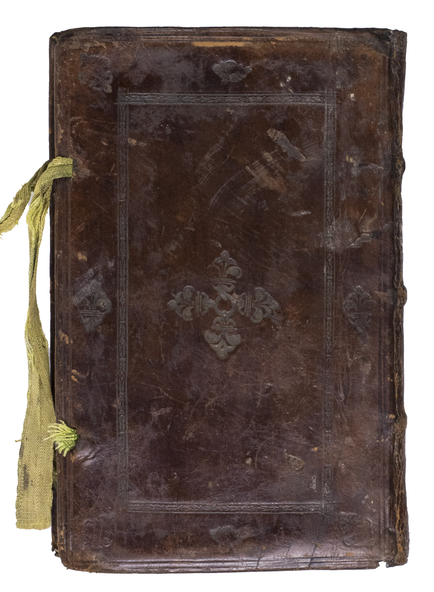 With crossed out ownership annotations and a library stamp on the title page, possibly from the Benedictine monastery of St. Wencelaus at Braunau, Bohemia. The boards and spine have been rubbed, with some loss of material, the original gilding is mostly gone, the corners are bumped, lacking most of the lower two closing ties. The leaves are lightly browned, a small tear in one of the double-page views. Otherwise in good condition. Belgica typographica 7827; BL STN Dutch, p. 16; Brunet, I, col. 588; Graesse, I, p. 264; STCV 12916566; USTC 408616 (9 copies); cf. Adams, A-2341 (other issue); for the binding: database NUSK, databáse slepotiskové výzdoby knizních vazeb; including NUSK exx. 3509, 3510, 3514, and 1316