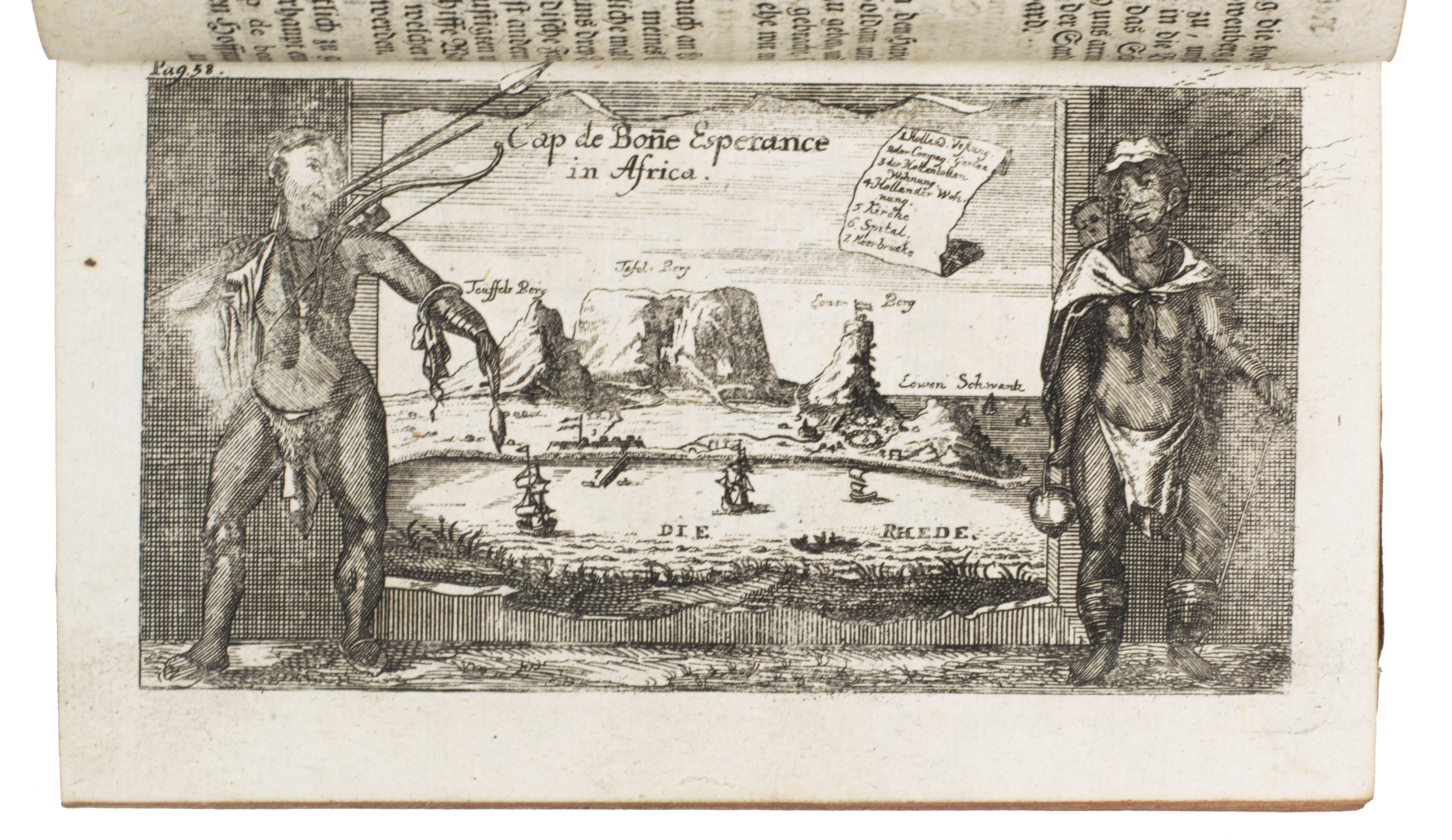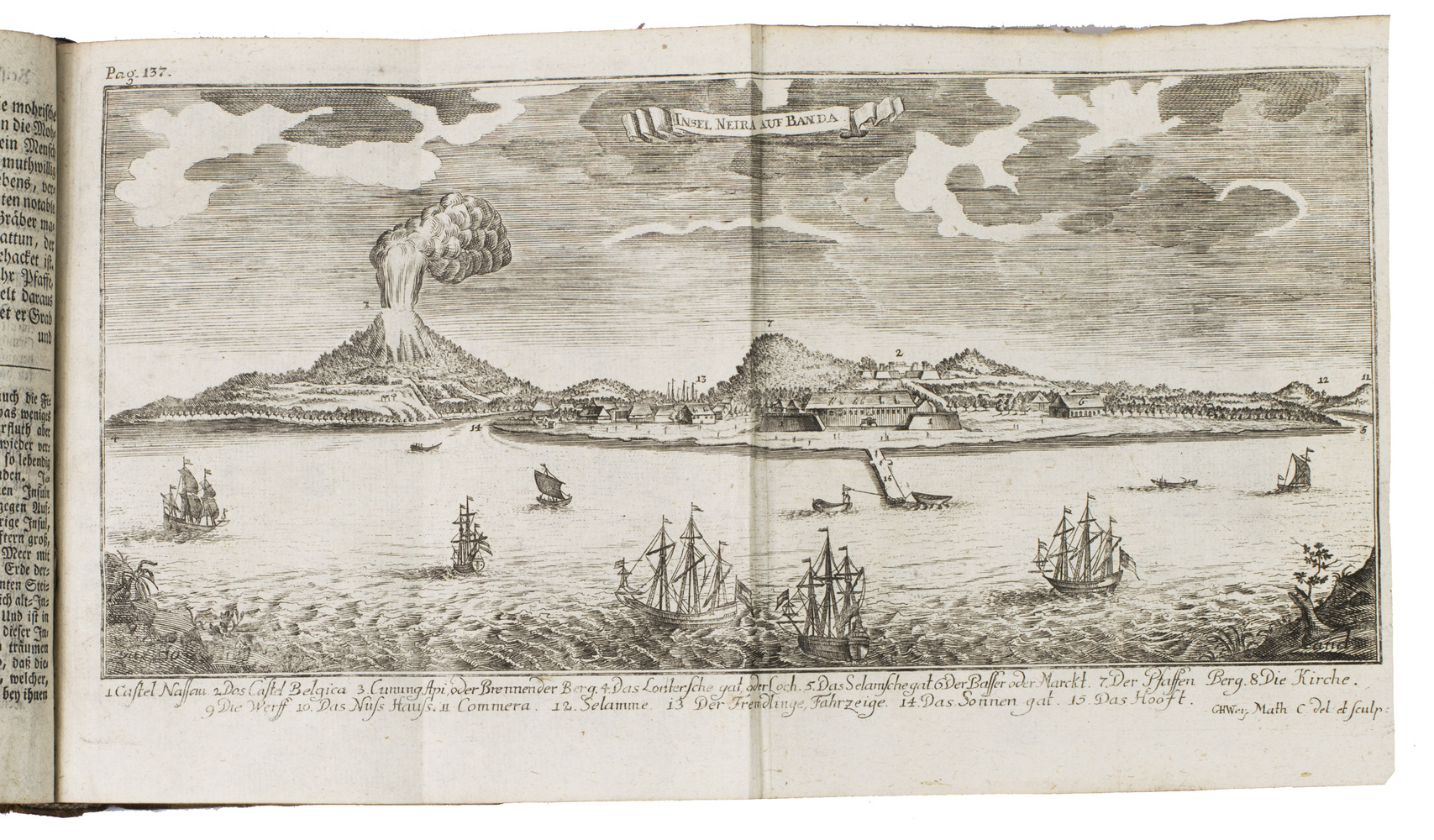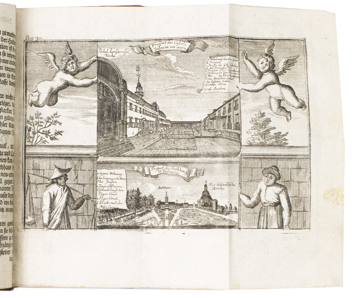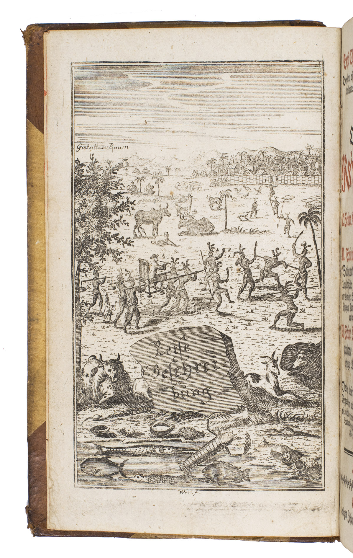 German Ernst Christoph Barchewitz (1687-1758) left his hometown Erfurt in 1707 to travel. He eventually reached Rotterdam, where he was employed by the VOC. In 1711, he embarked on a journey to the East Indies and became the Governor of the Island of Leti. Barchewitz reports extensively on his vicissitudes and gives interesting information on the local natural history, inhabitants and their customs. He also makes mention of sightings of mermaids. The illustrations depict views of Cape of Good Hope with pictures of Hottentots, the Island Banda, Leti, buildings in Batavia, Ambon, and trees and fruits. The work also includes a map of the Banda Sea with its islands. Barchewitz returned to Erfurt in 1722, where he wrote his travel account. The present work is the fourth edition.