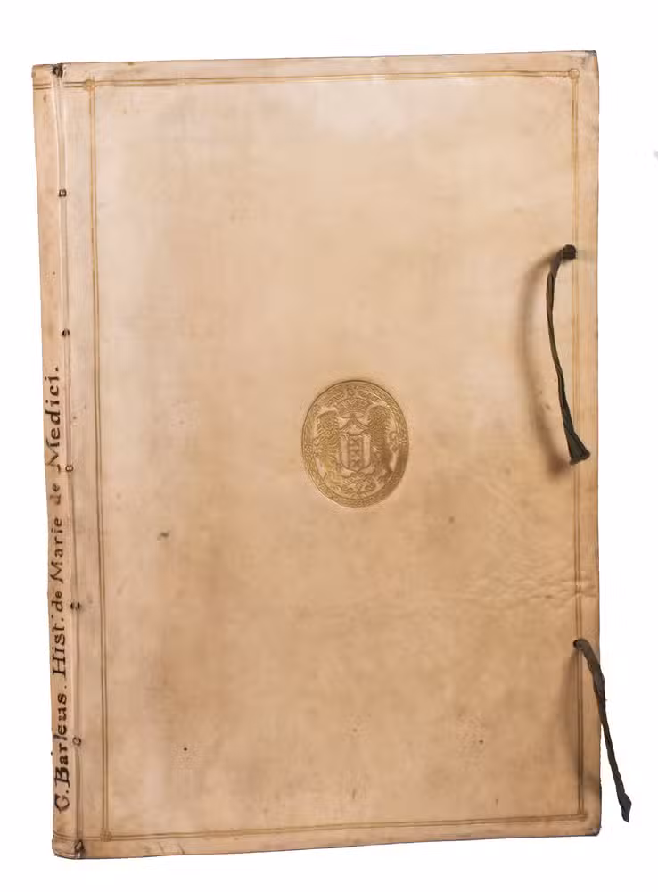 The work is especially known for its impressive plates, which are known to have had either two or three different states, depending on the plate. In the present copy, all plates are in their second state. This is easily recognisable by the lack of numbers at the very bottom of the plates, but the addition of the view of Amsterdam on the frontispiece portrait of Marie de' Medici, and the coats-of-arms at the top of the folding plate with the view of Amsterdam from the IJ. Copies with plates in early states are also usually larger than those with plates in later states. This is the case here, as the present copy is extremely large, with very ample margins.