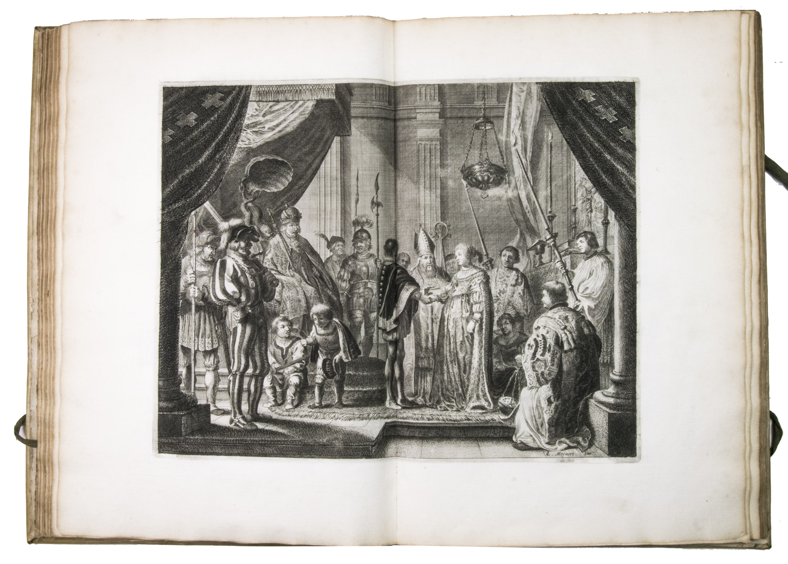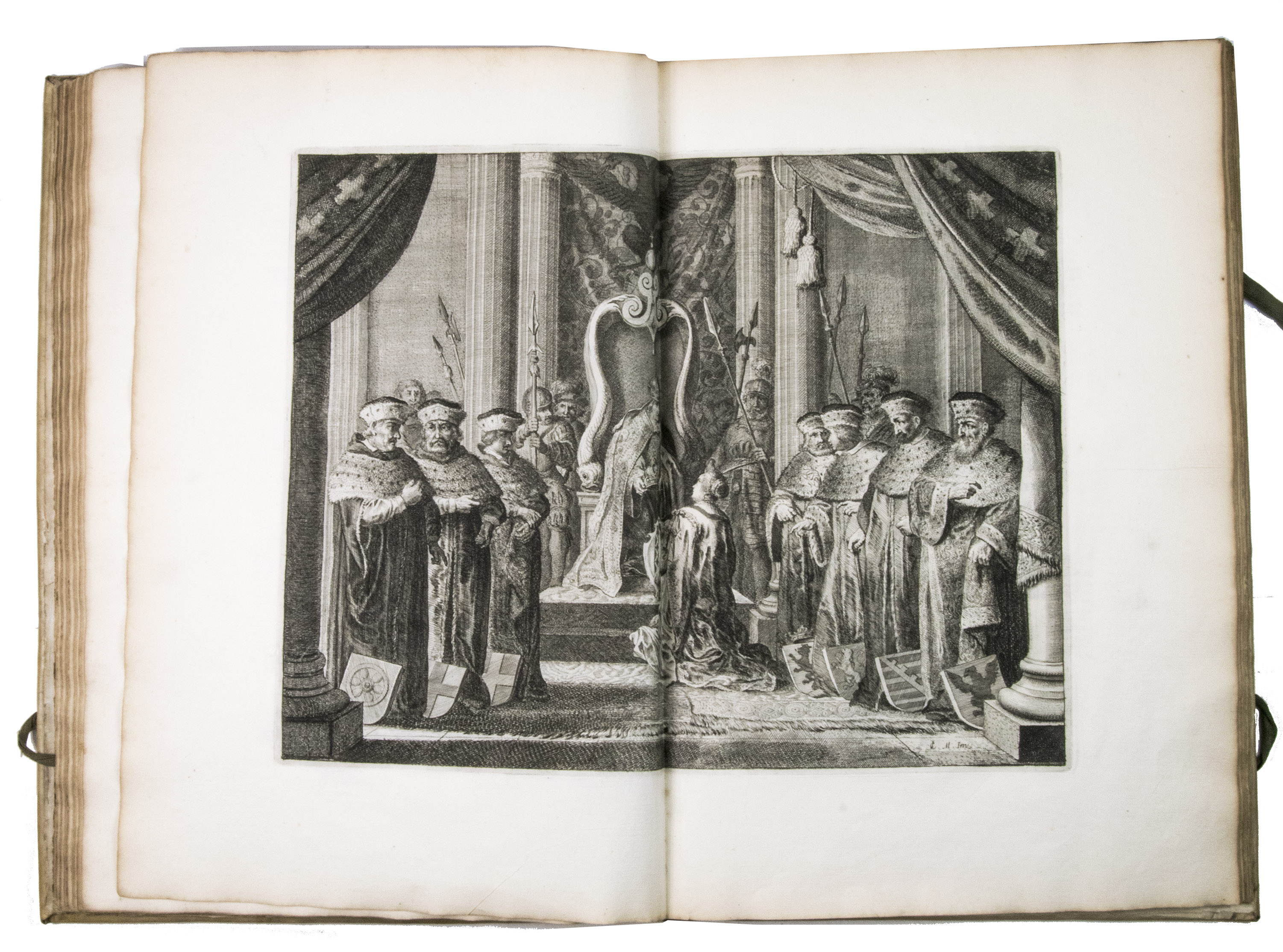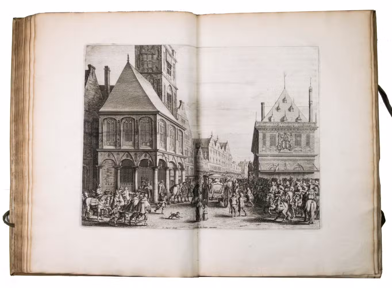 The vellum shows mild traces of use, with a few scratches, and a bumped upper corner on the back board. The first few leaves are slightly soiled in the margins, the first few leaves and pages 17-25 are slightly frayed. Otherwise in good condition. Berlin Kat. 2950; Hollstein XIV, Nolpe 86-94, and XXIV, Saverij 144 a-h (the plates); Landwehr, Splendid ceremonies 109; Lipperheide 2665; Muller, Nederlandse historieplaten 1793 & supplement 1793; Snoep, Praal en propaganda, pp. 39-76; STCN 85007293X (11 copies); Vinet 489.