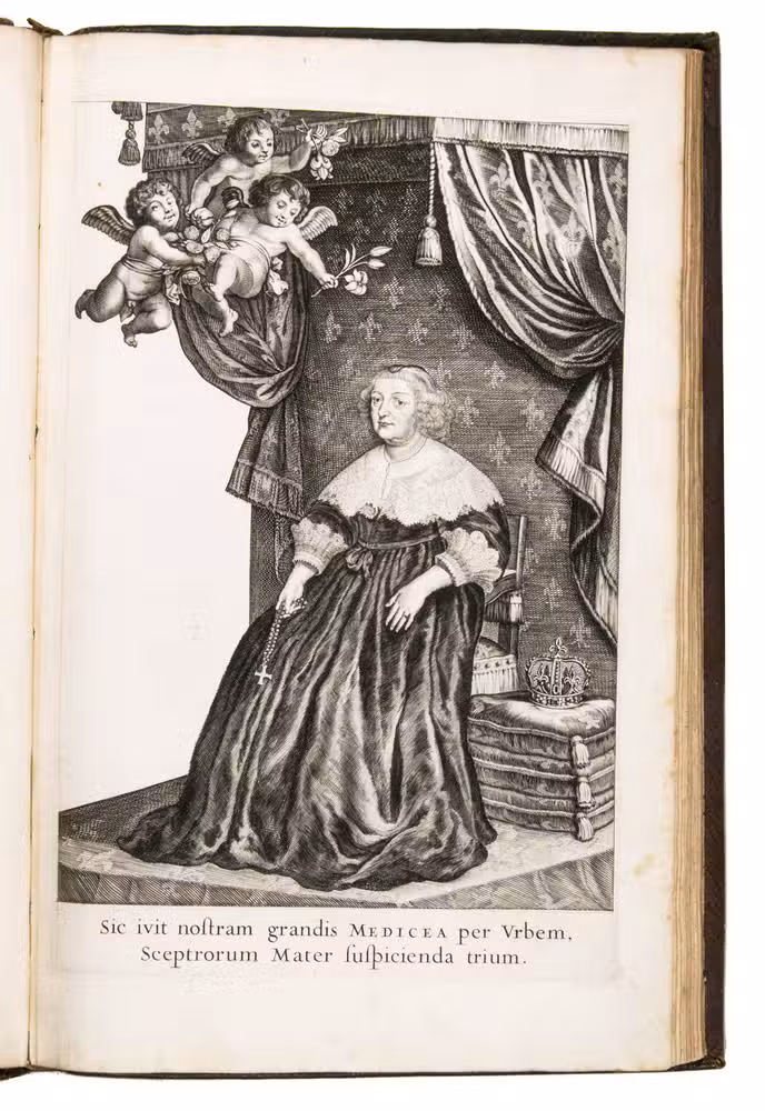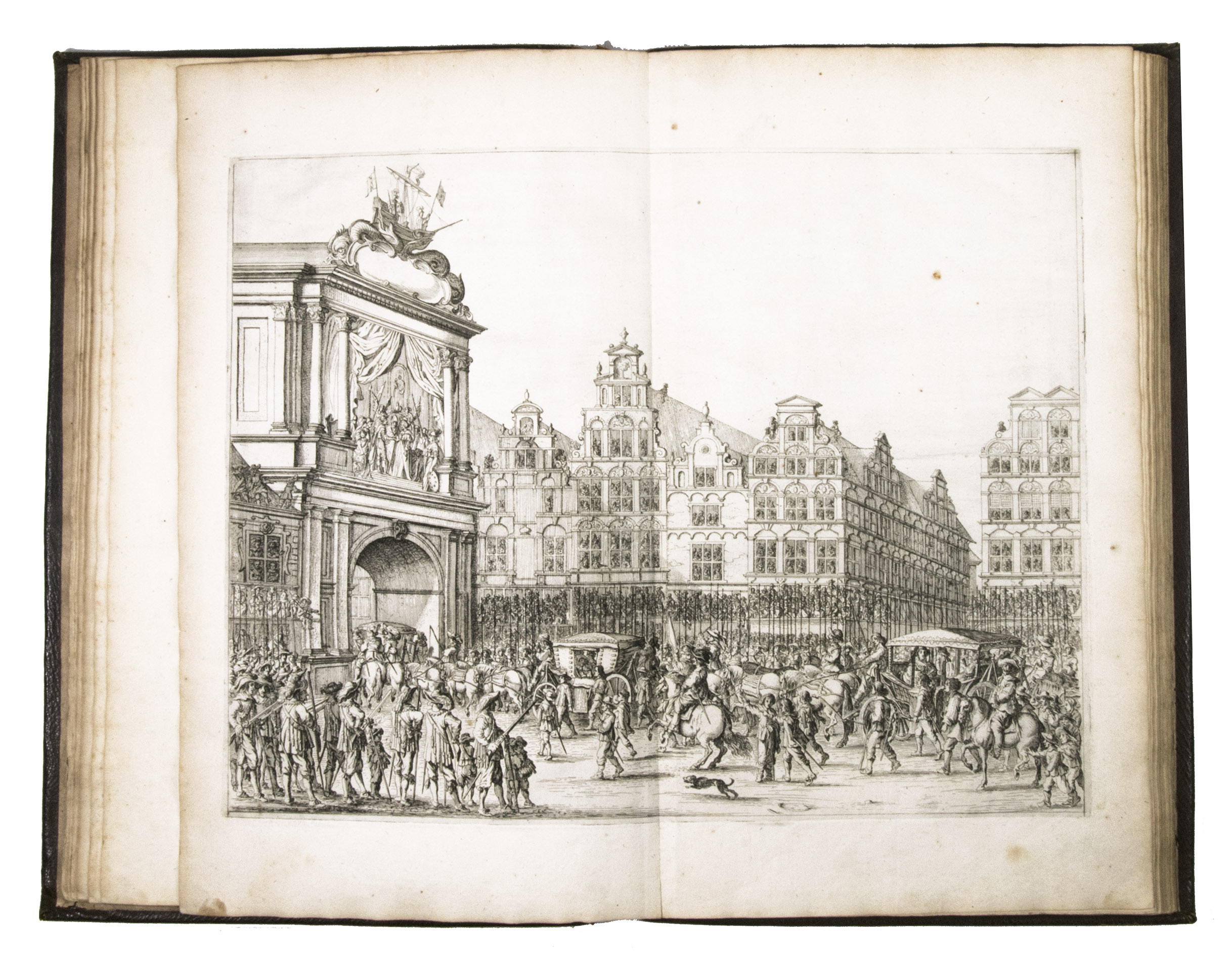 First edition in Latin of a beautifully illustrated Dutch Royal Entree book, with all of the plates in their first states. Published simultaneously in French and in Latin, it is the first official description of an entrance in the Northern Netherlands, a tradition which had flown over from the South. The ceremonial entry of Marie de' Medici (1575-1642) was an important moment in the history of Amsterdam. Although her presence was a politically sensitive issue, she was received with great honour. The present work, complete with all 17 engravings, is a beautiful visual and textual homage to this event.