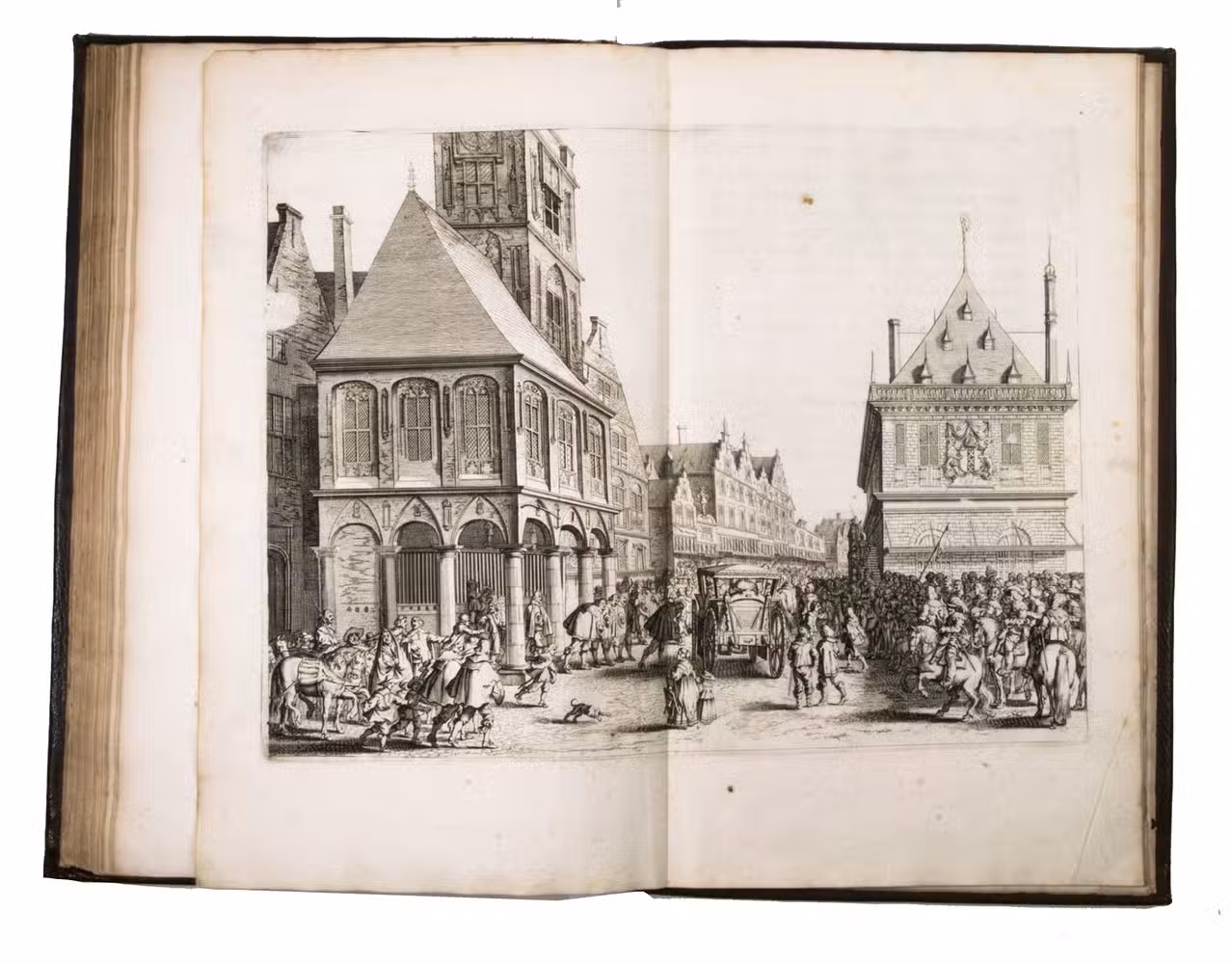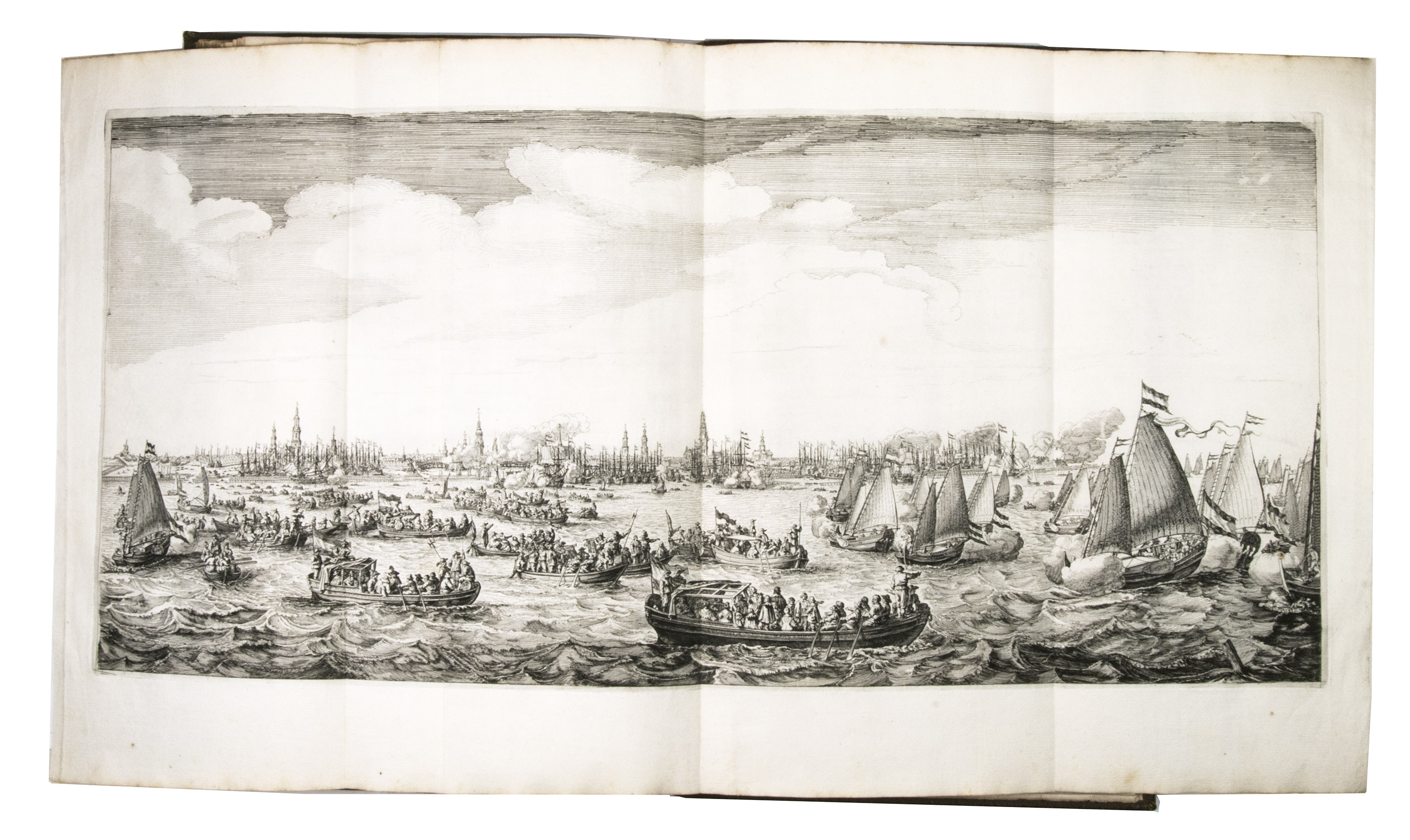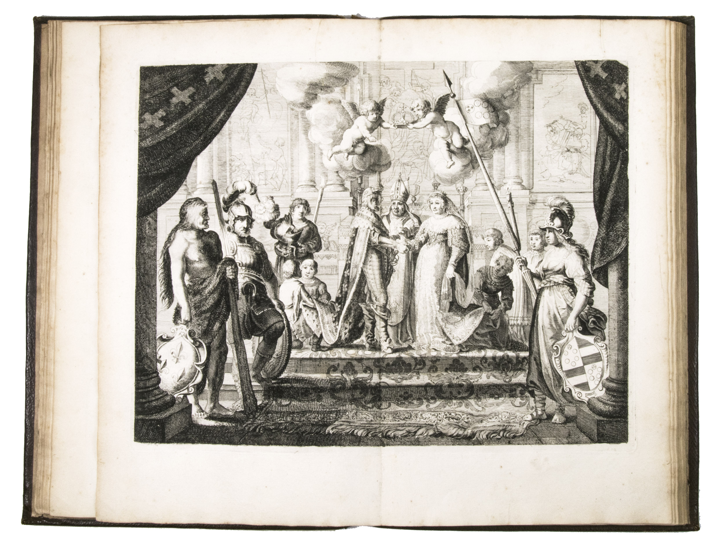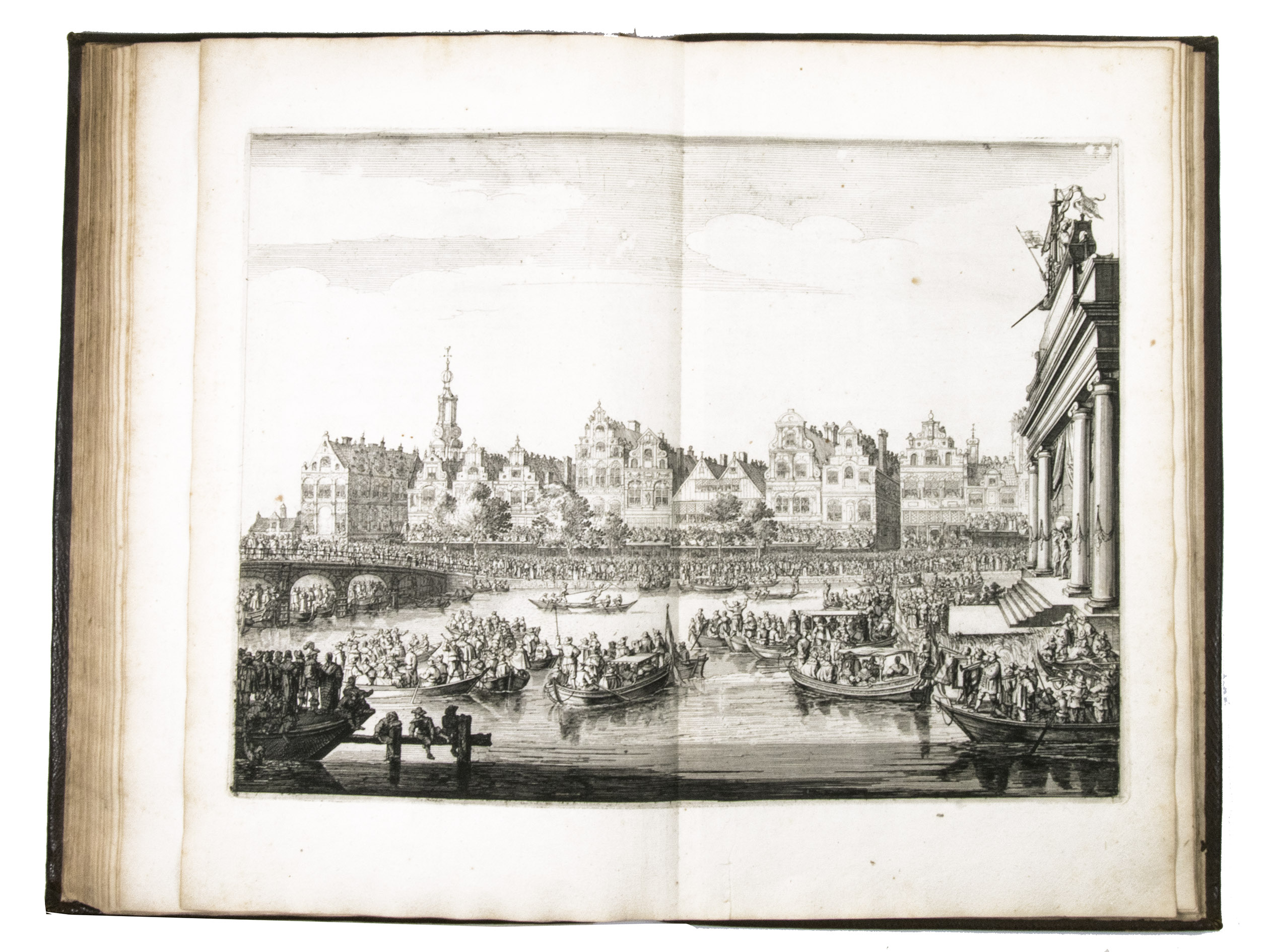 The edges and corners of the boards are scuffed, the boards and spine are rubbed, the board are slightly dust soiled. The work is slightly foxed, with some leaves affected more than others. Otherwise in good condition. Berlin Kat. 2949; Hollstein XIV, 86-94, and XXIV, 144 a-h (the plates); Muller, Historieprenten, 1793; L'Art Ancien, cat. 26, nr. 398; Landwehr, Splendid ceremonies, 108; Lipperheide 2665; Snoep, Praal en Propaganda, pp. 39-76; STCN 850281733; Verzameling Amsterdam W.J.R. Dreesman, p. 476; USTC 1030730; Vinet 489; cf. Collections A.J. Nijland troisième partie 443-7.