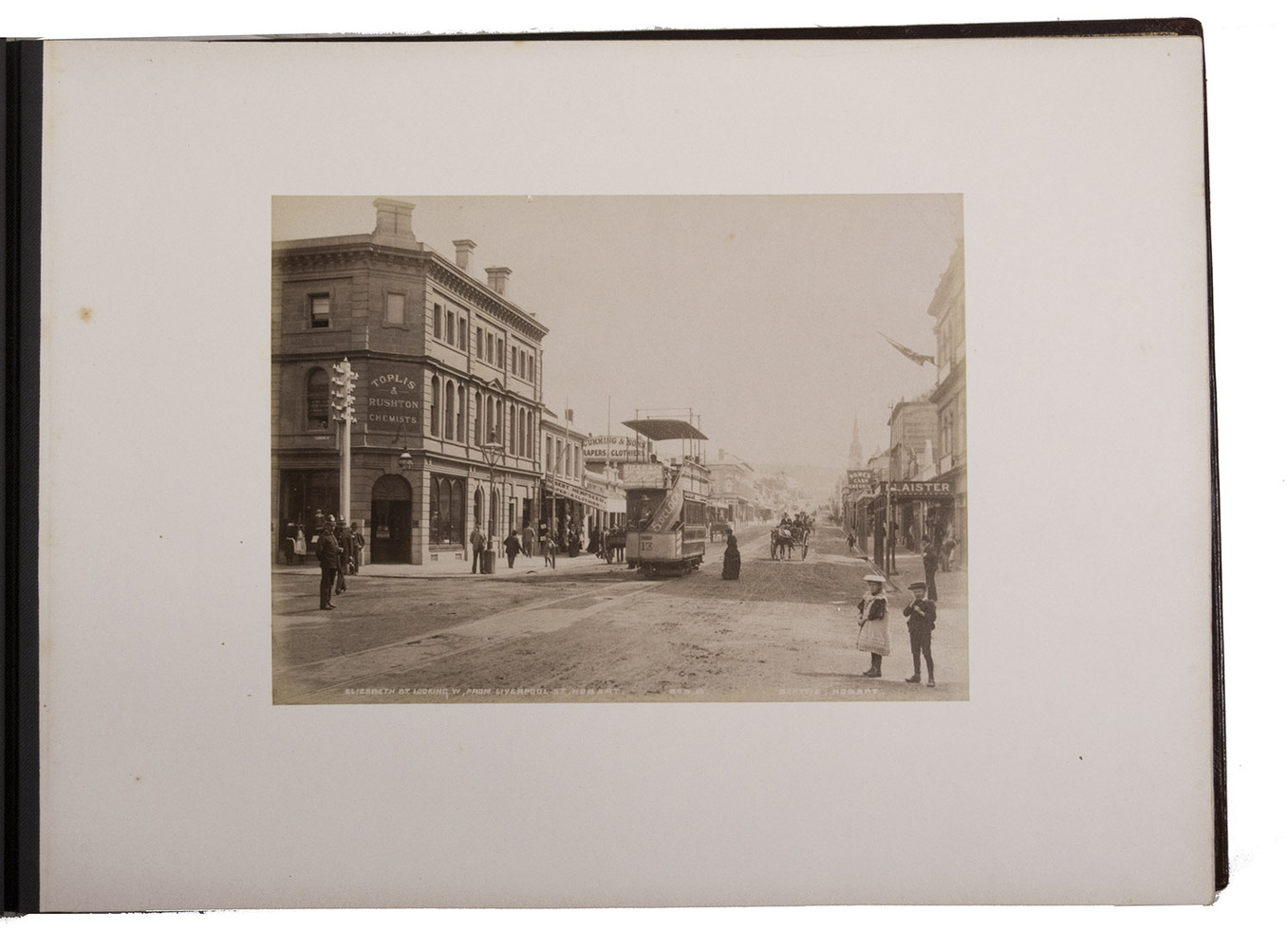 Hobart, [ca. 1895]. Oblong folio (30 x 41cm). With 32 original photographs (ca. 17 x 23 cm), pasted on paperboard. Later gold-tooled red morocco.