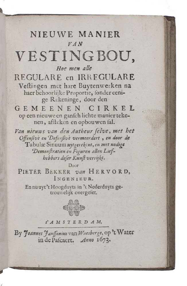 Nieuwe manier van vestingbou, hoe men alle regulare en irregulare vestingen met hare buytenwerken na haer behoorlijke proportie, sonder eenige rekeninge, door den gemeenen cirkel op een nieuwe en gansch lichte manier tekenen, afsteken en opbouwen sal. Van nieuws van den autheur selve, met het offensive en defensive vermeerdert, en door de tabulae sinuum uytgerekent, en met nodige demonstratien en figuren allen liefhebbers deser kunst verrijkt.