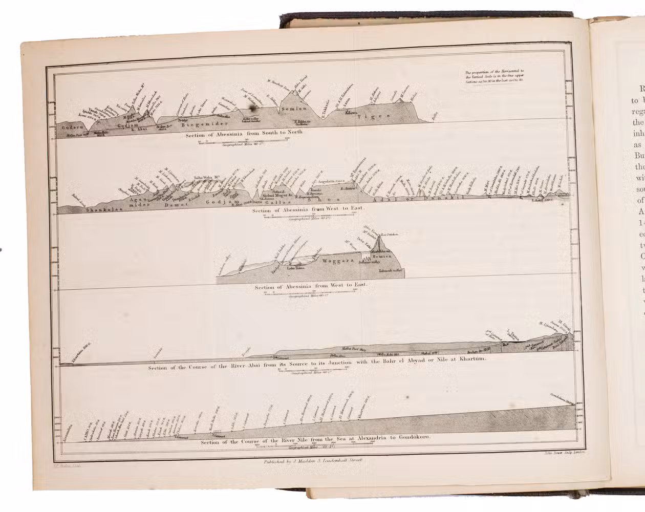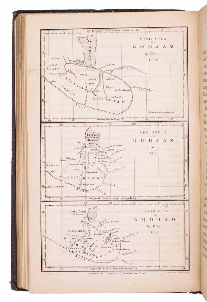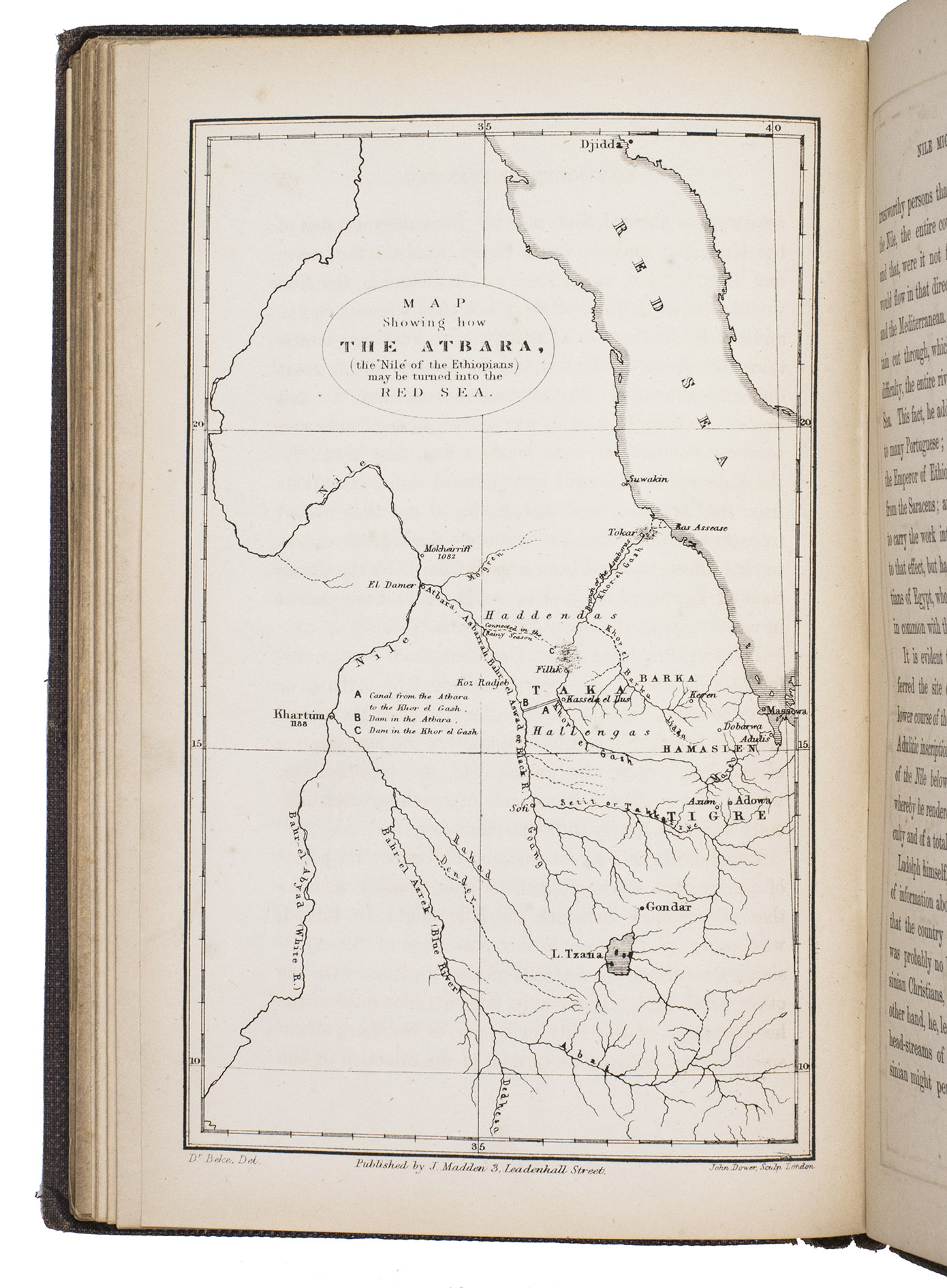 Dedication copy of the first edition of a survey on the geography of the Nile and it's sources. Charles Tilstone Beke (1800-1874) was an English traveller and geographer, best-known for his explorations and studies of the Nile. The present work includes his pioneering essay On the Nile and its Tributaries and contains much new material concerning the latest discoveries in the region, including the data of the expeditions by John Hanning Speke (1827-1864) and Sir Richard Francis Burton (1821-1890). The present copy was given by the author to Thomas Hodgkin, MD (1798-1866), the famous physician, pathologist, and reformer.