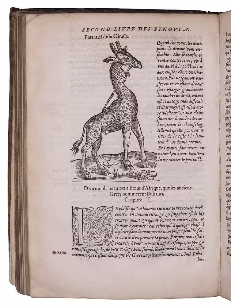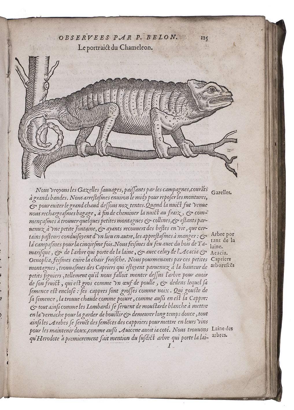 Third edition of Belon's Observations, the fruit of his extensive travels in Greece, Turkey, Egypt, Palestine, Lebanon and Syria from 1546 to 1549. Piere Belon (ca. 1518-1564), famous for his works on ornithology, was attached as naturalist to the French embassy to the Ottoman Empire, aimed at convincing Suleiman the Magnificent to join forces against Charles V. Unlike many contemporary travel writers, Belon does not elaborate on extraordinary travel adventures, but rather limits himself to detailed observations on mammals, fish, snakes, birds, plants and the manners and customs of the peoples he encountered, only commenting on what he had witnessed himself.