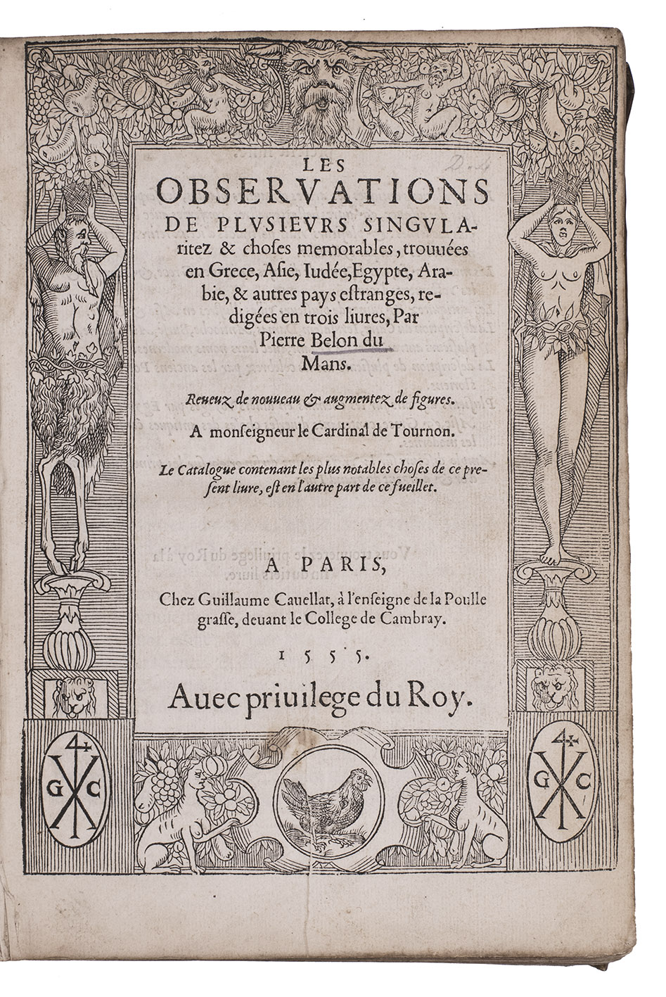 Les observations de plusieurs singularitez et choses memorables, trouvées en Grece, Asie, Judée, Egypte, Arabie et autres pays estranges.