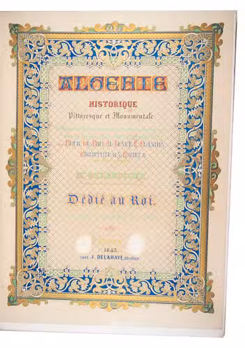 Algerie historique, pittoresque et monumentale, ou Recueil de vues, costumes et portraits faits d'après nature dans les provinces d'Alger, Bone, Constantine et Oran.