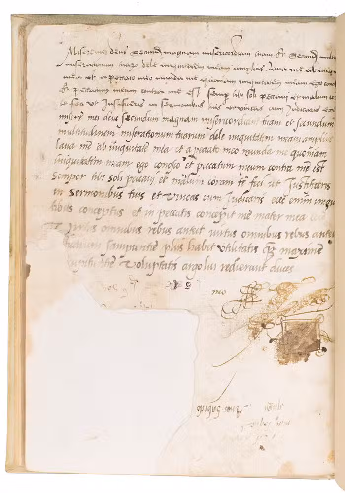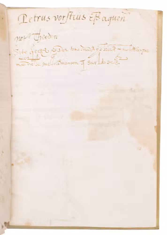 With a later annotation on the recto of the final blank leaf ("Petrus vorstius ep[iscopu]s aquen nota Theoderi"), another underneath, and two longer annotations on the verso of the final blank leaf, one in a contemporary and one in a later hand, with sermons of prayers. A water stain in the outer margin throughout, somewhat affectign the text, and wormholes in the inner margin throughout, slightly affecting the text, outer corner of final blank leaf restored, with some loss of the manuscript annotations. Otherwise in good condition. BM, French books, p. 50; USTC 180181 (1 copy); WorldCat 1041570796, 1025718194 (2 copies).