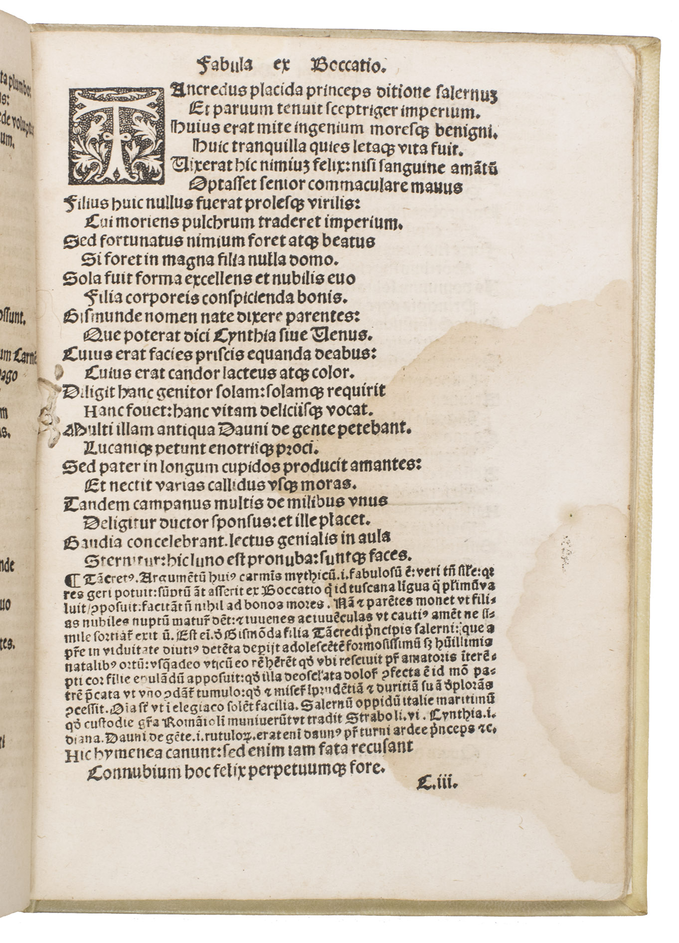 Very rare work with poetry by Filippo Beroaldo the Elder (1453-1505), one of the leading Italian humanists. The work contains twenty different poems and includes Carmen lugubre, which is considered one of Beroaldo's masterpieces, because he combined all his oratorical skills in it. The present work is very rare. It has been recorded in just three libraries, and we have only been able to find two other copies in sales records of the past hundred years.