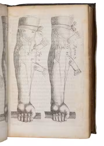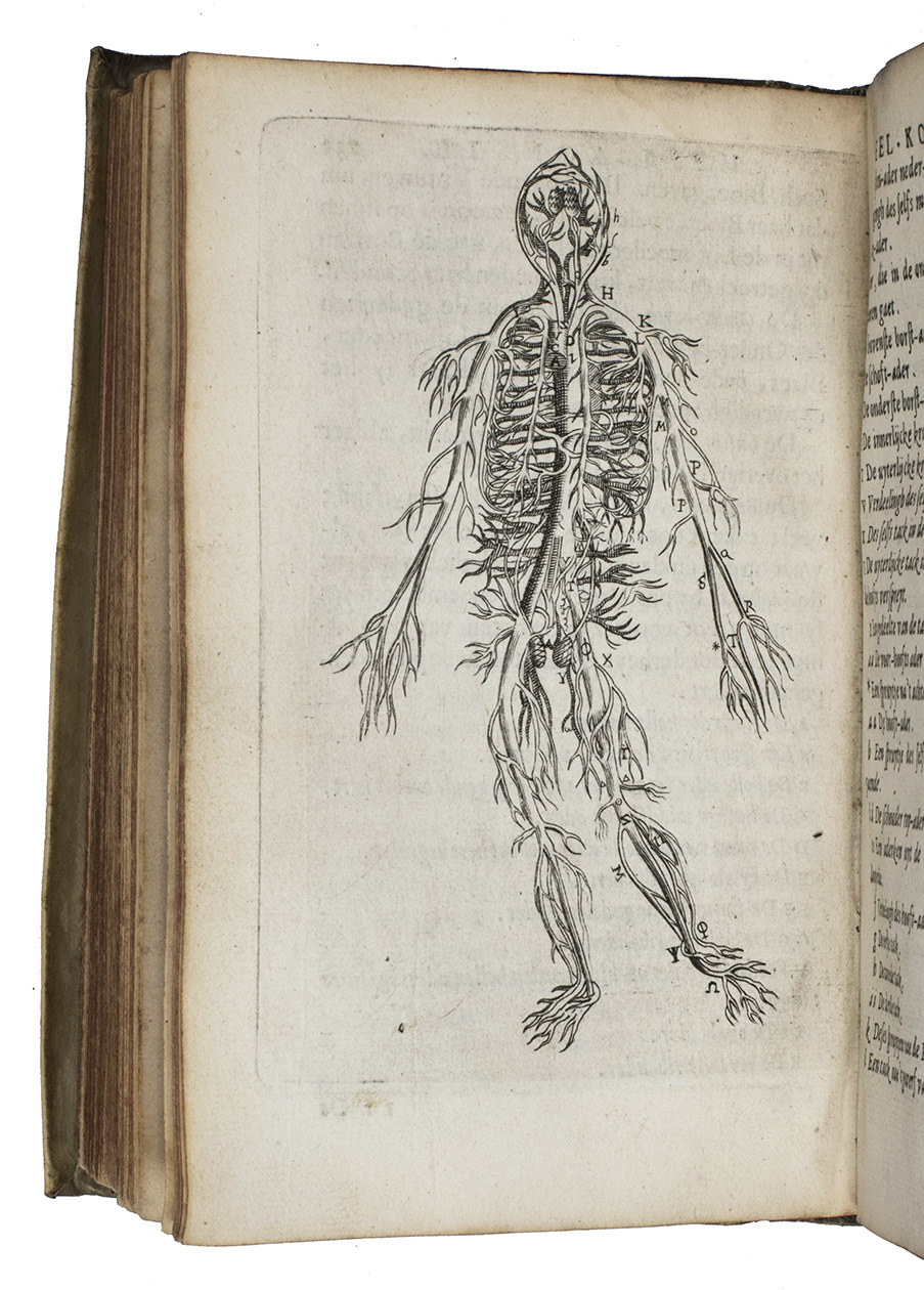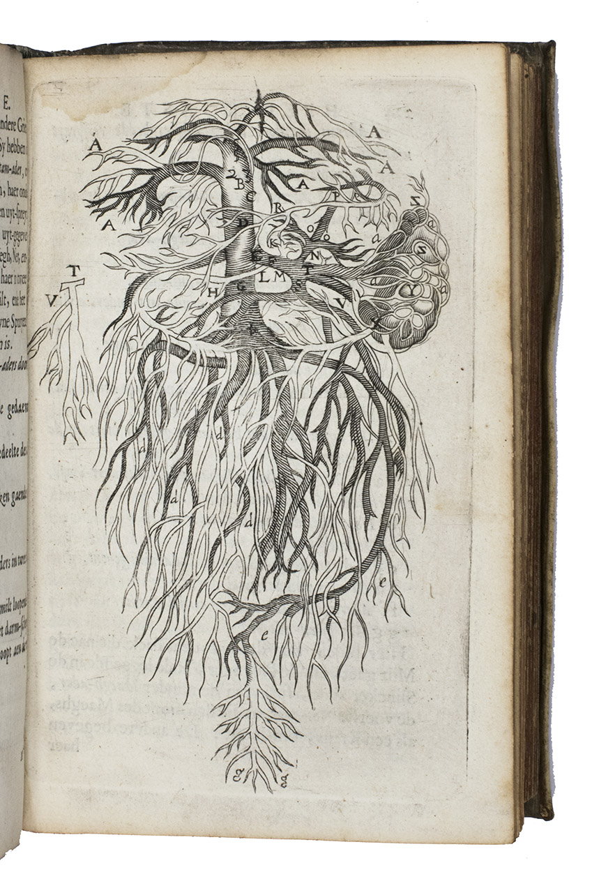Ad 2: Second edition of an interesting study of the muscular system by Fortunatus Plempius, or Plemp (1601-1671), a physician at Amsterdam and close friends with the famous professor Tulp. At the end is added: "Geschil of het hayr gezielt is, en waerachtelick gevoedt wort", a disputation about hair, debating whether it is alive and really fed. First published in 1630, the present second edition was probably printed to accompany the first edition of Van Beverwijck book.
