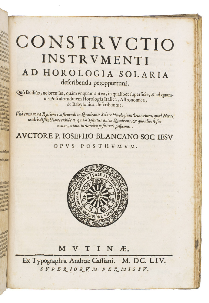 With: (2) BIANCANI, Giuseppe. Constructio instrumenti ad horologia solaria describenda peropportuni. ... Opus posthumum.