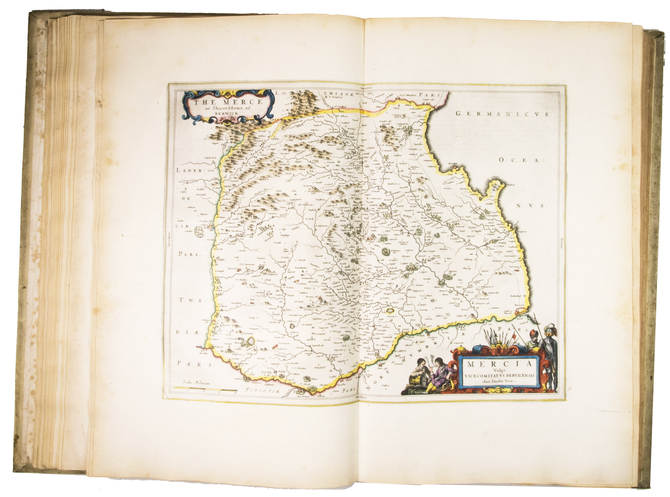 In good condition, with a few leaves browned, a few creased, and occasional minor water stains or foxing. The first atlas of Scotland and Ireland, splendidly produced by Joan Blaeu. Koeman & V.d. Krogt 2:621.5 (2:421Qa with different title-slip); cf: H. de la Fontaine Verwey, "De glorie van de Blaeu-Atlas", in: Uit de Wereld van het Boek III, pp. 195 ff.