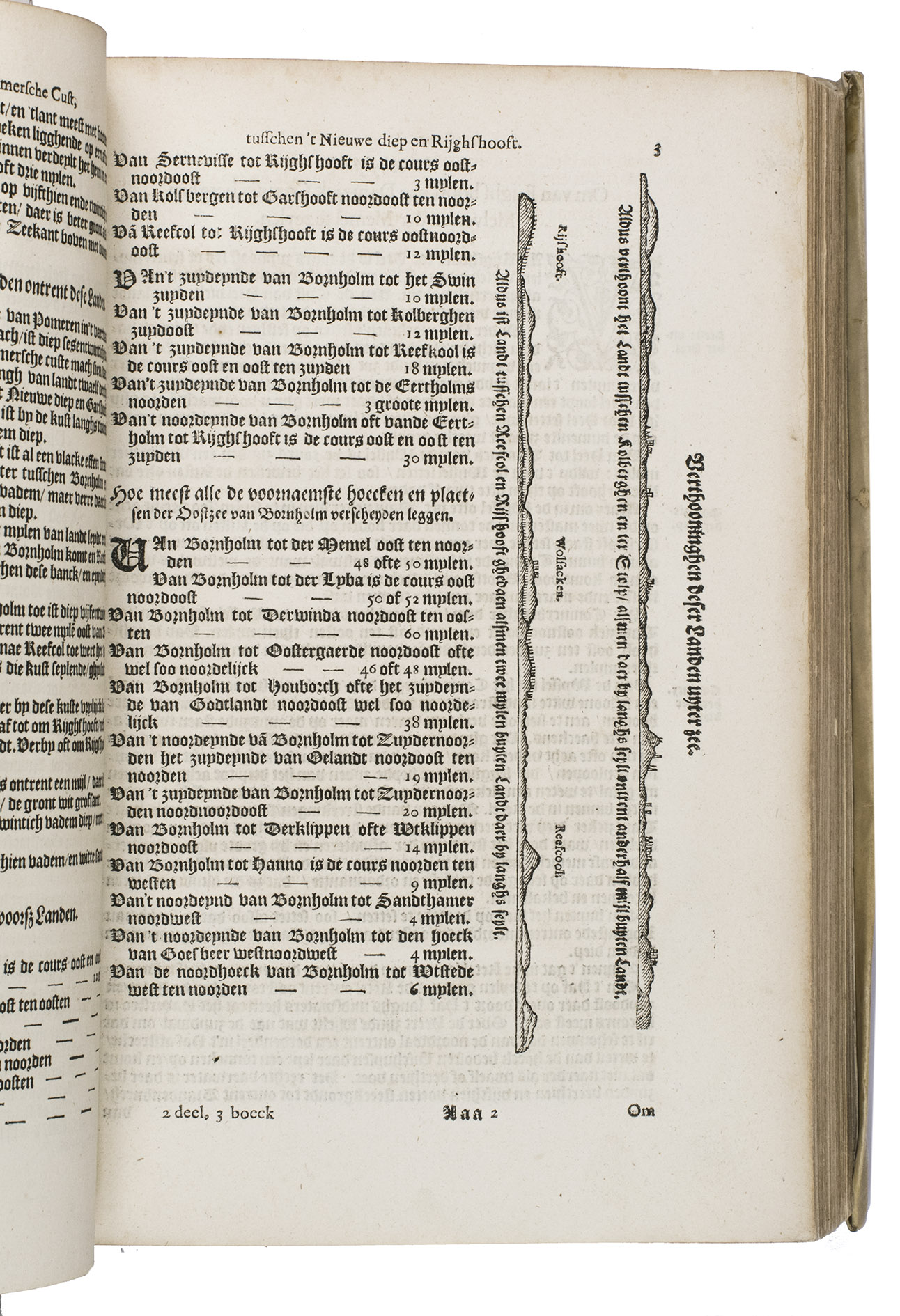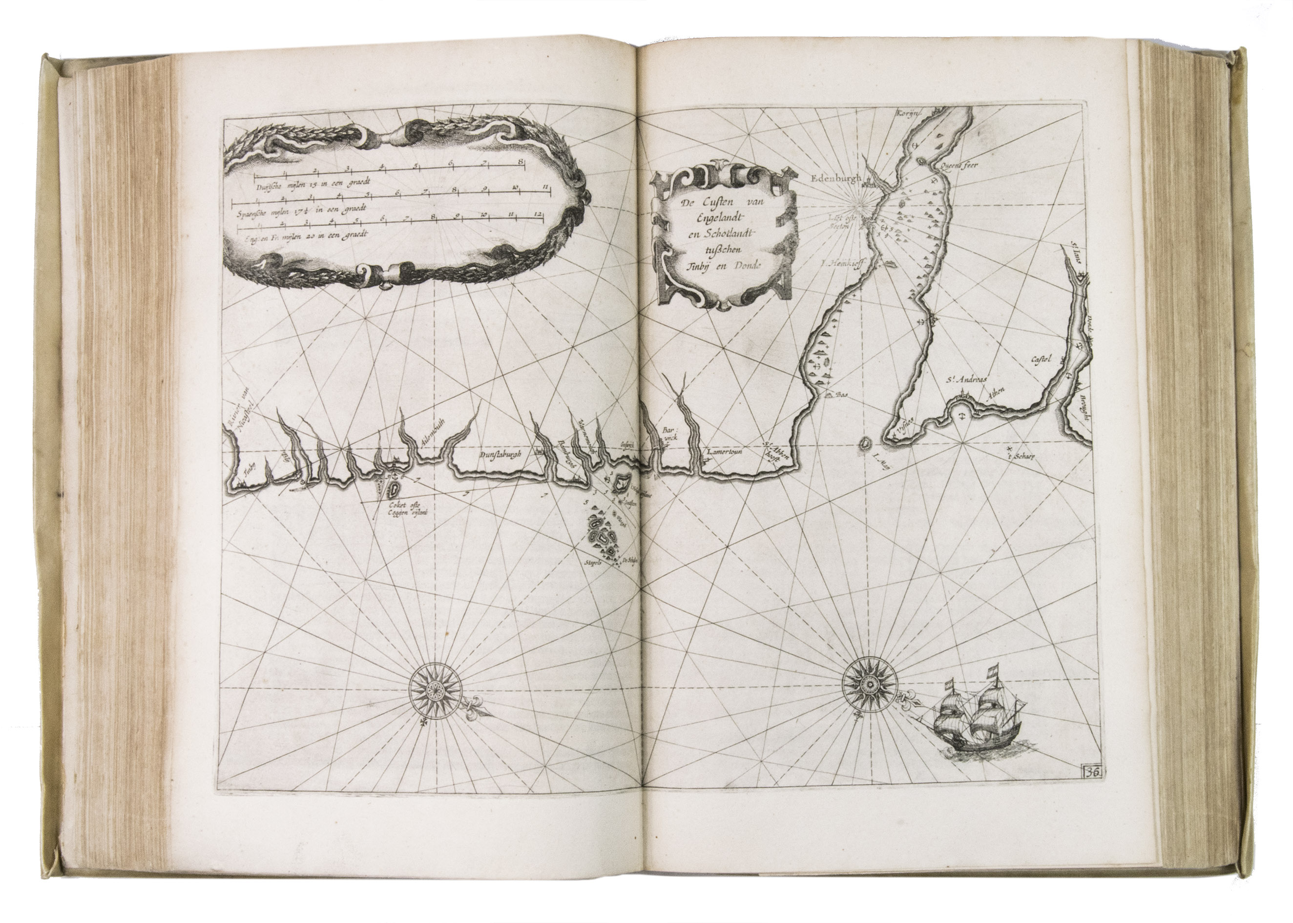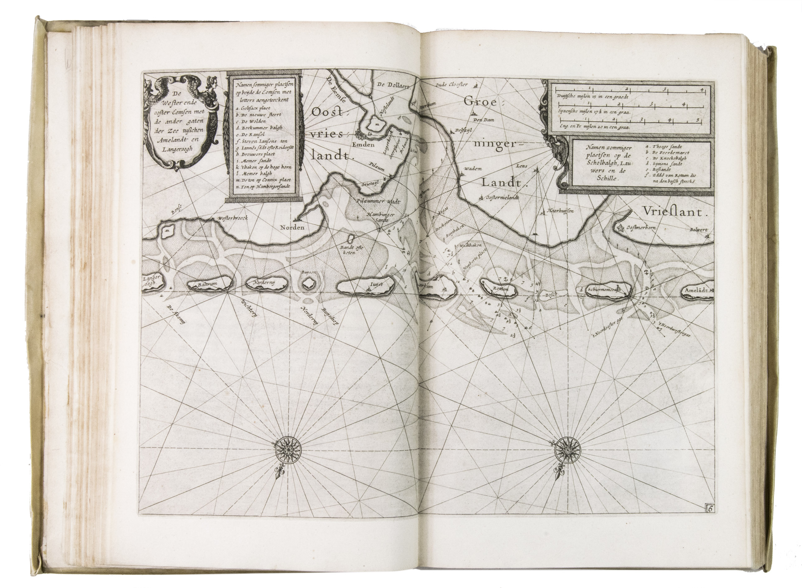Second edition of Willem Blaeu's famous but extremely rare pilot guide, of which only a handful of copies are still known to exist. It was one of the largest pilot guides of the time, containing almost thrice as many charts as another famous example of the time, Blaeu's own Het Licht der Zee-vaert (1608). Although the work proved hugely successful because of this large update and was republished many times, it was also actively used at sea for navigation, which accounts for its extreme rarity today. Only a few copies of each edition are currently known. For the present edition, we have only been able to trace five other copies, of which four in institutions, and just one in sales records.