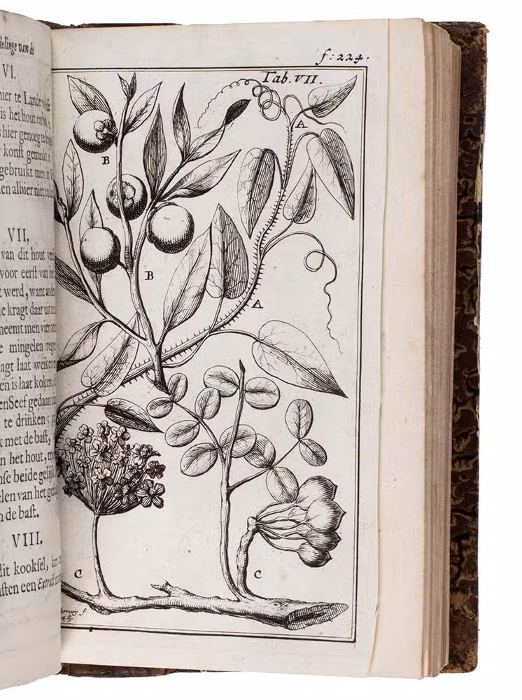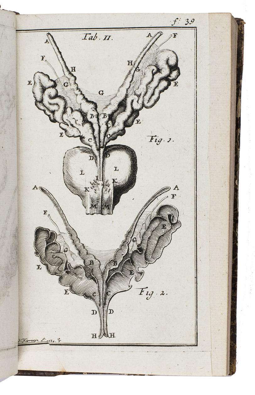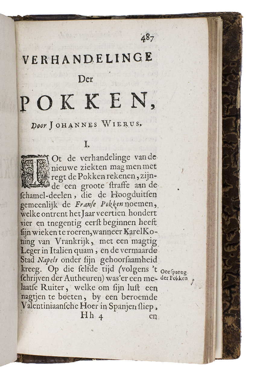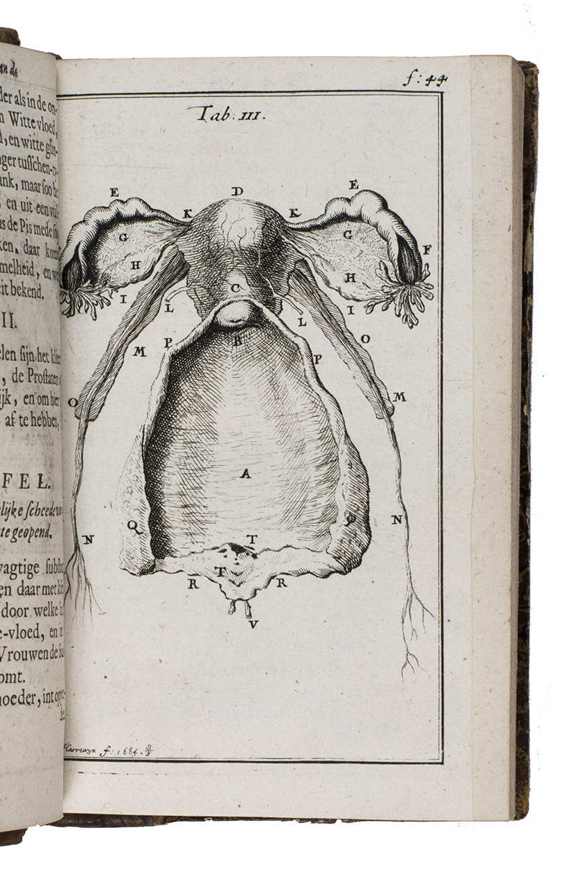 With the Jugenstil book plate of Dr. Ad. Stordeur, Bruges (Belgium), dated 1910; and a small owners label ("GOM" monogram) partly overlapping it. Very slightly browned but still in good condition. Bibl. Med. Neerl. I, 221; De Vries, Populaire prozaschrijvers 470; STCN (5 copies); Wellcome Library II, 177; cf. Bibl. Walleriana 1110-1111 (German eds.); Scheepers I, 562 (1696 ed.).