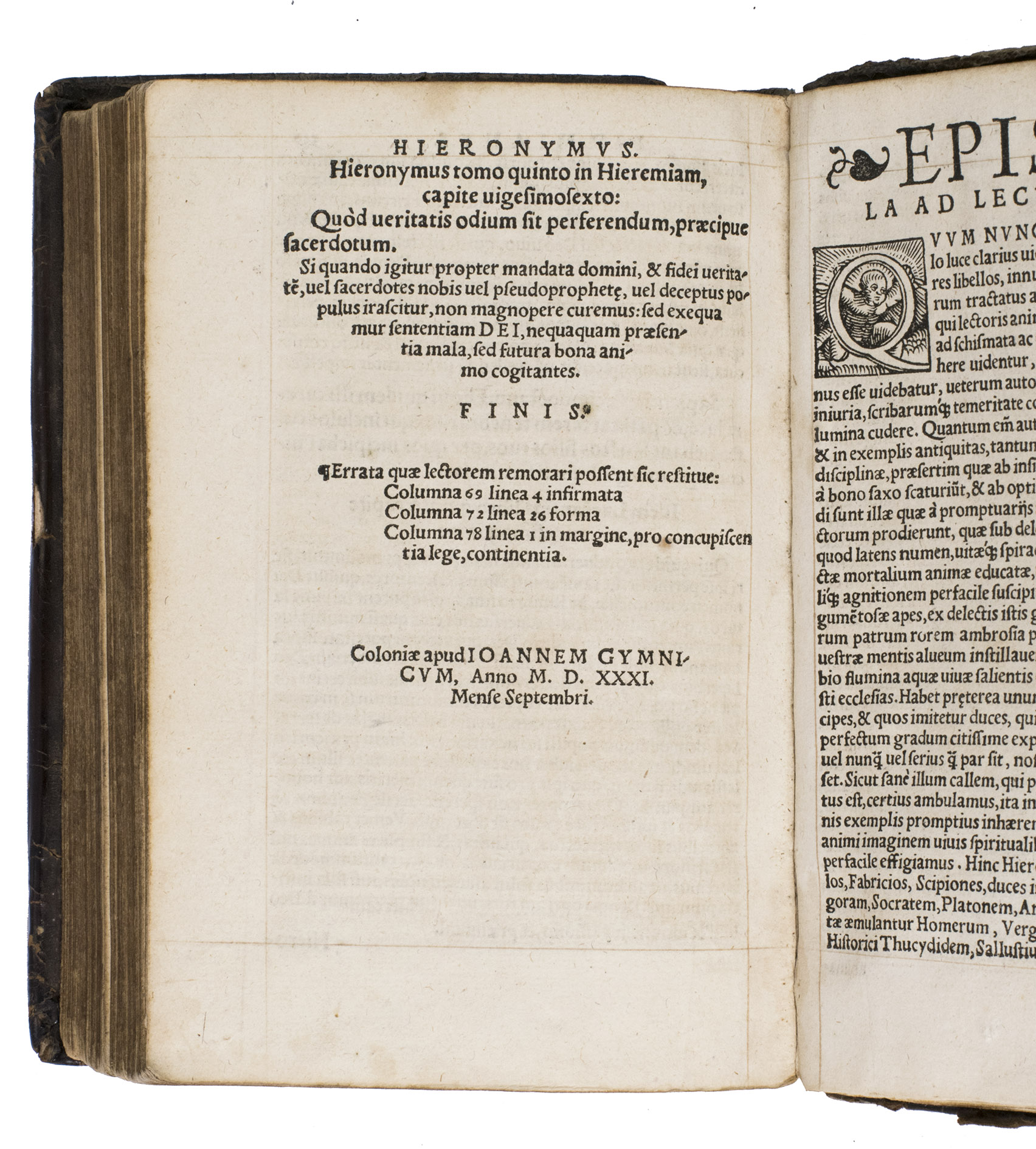 (Colophon:) Cologne, Johann Gymnich, September 1531. 8vo (15.1 x 10.1 cm). With a woodcut title frame. Contemporary blind-tooled calf. [32], 539, [4], [1 blank] pp.